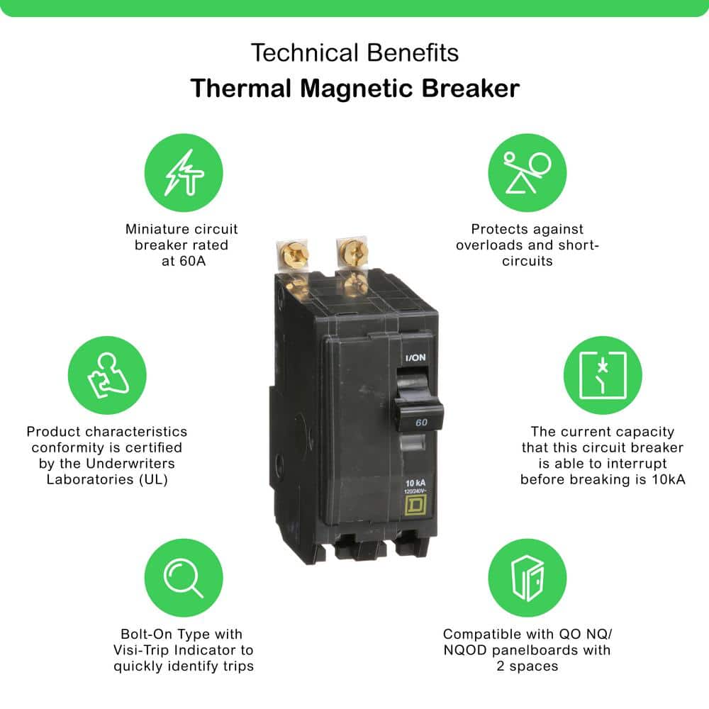 Square D QO 60 Amp 2-Pole Bolt-On Circuit Breaker