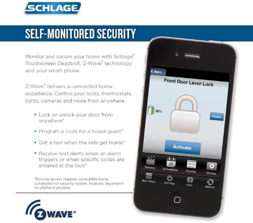 - Z‑Wave Smart Control: Works with compatible hubs (Alexa via Wink/SmartThings, Nexia, Vera) for remote locking and monitoring.