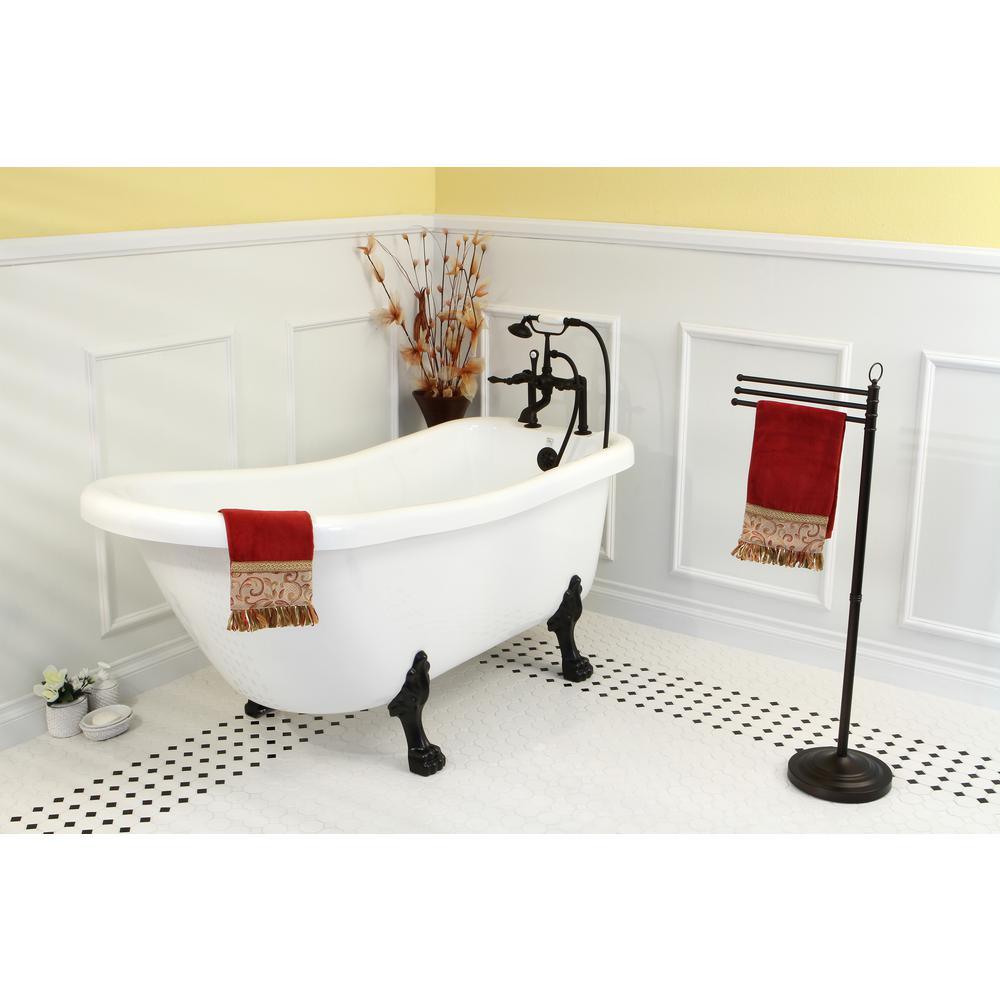 Slipper 5.6 ft. Acrylic Clawfoot Bathtub in White and Faucet Combo in Oil Rubbed Bronze