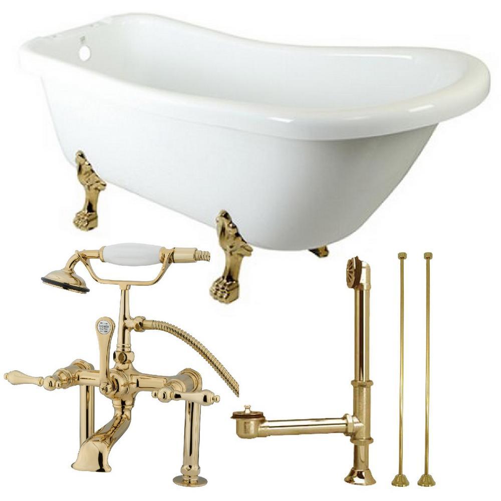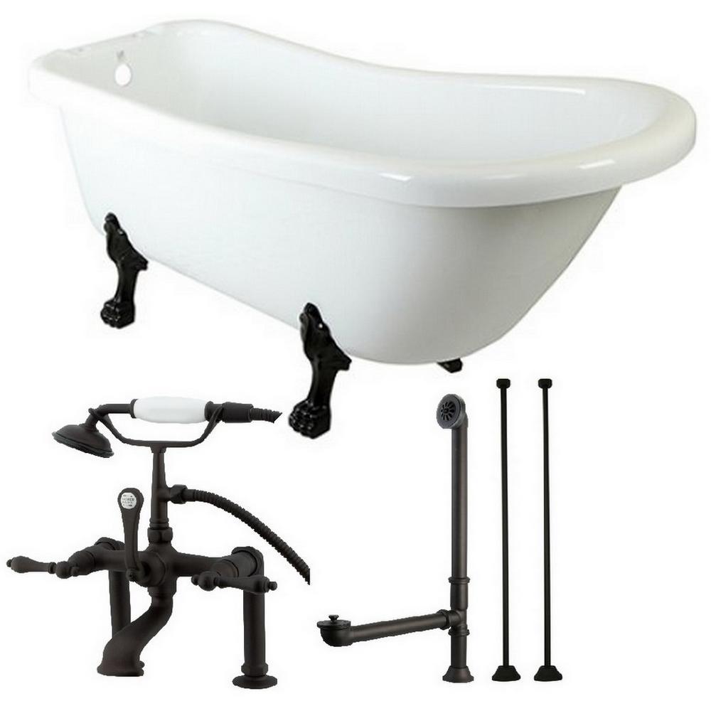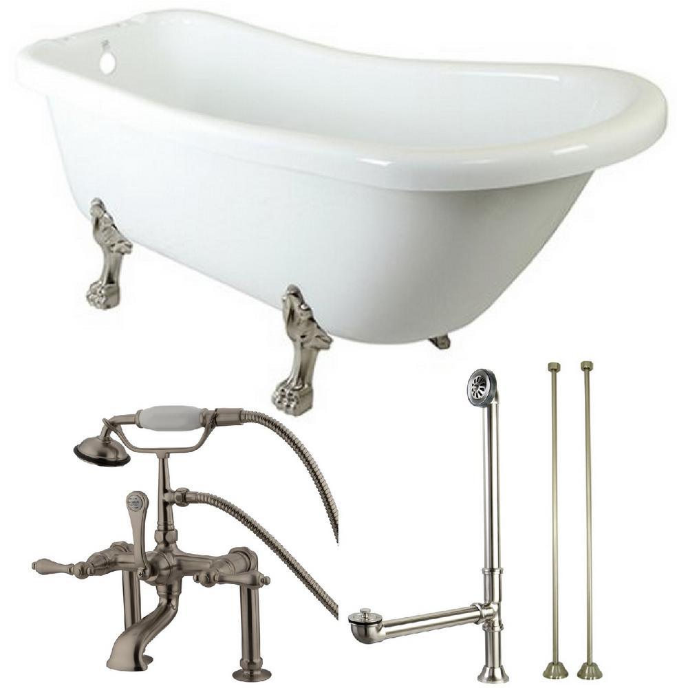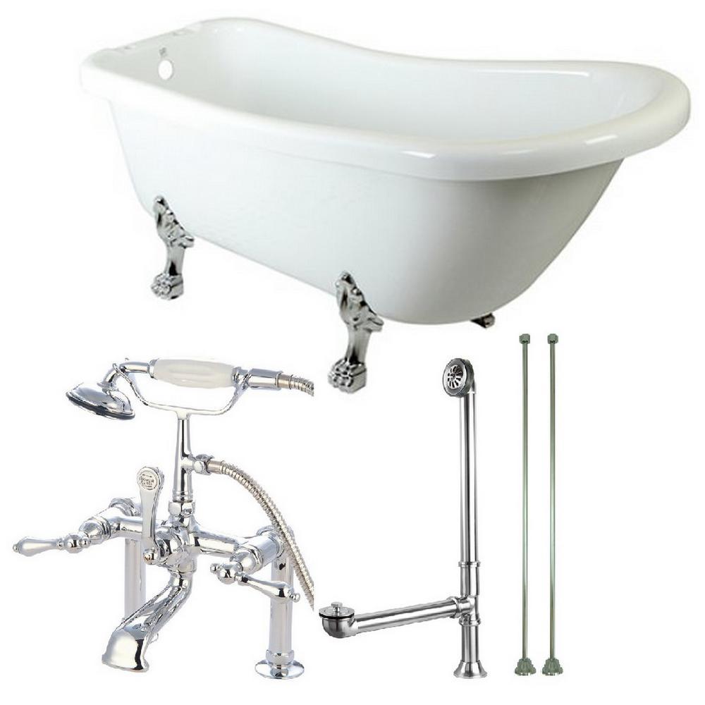 The Slipper 67 in. acrylic bathtub will surely be the center point of your bathroom with timeless styling and ornate tub feet. The extended gentle slope backrest allows you to lean back and enjoy a nice soak. Combo set includes tub, faucet, drain and supply lines.