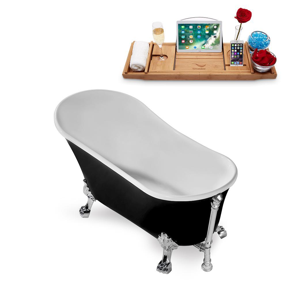 This spacious 67 in. Streamline N345CH-CH Clawfoot Tub and Tray With External Drain with 77 Gal. capacity is all you need for a relaxing night in. Featuring a clawfoot style that allows for easy installation and equipped with an external polished chrome drain and chrome claw feet that add a touch of exclusivity, this bathtub will meet and exceed your expectations. And when it comes to longevity, this tub promises to last for many years to come since it is crafted from durable acrylic. And leaving the best for last - it comes in a glossy black finish that will add a hint of luxury to your bathroom ambience.