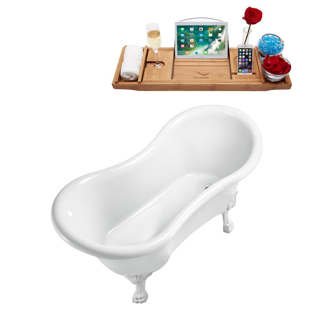 This spacious 62 in. Streamline N1020WH-IN-BNK with 53 Gal. capacity is all you need for a relaxing night in. Featuring a clawfoot style that allows for easy installation and equipped with polished white claw feet and a polished brushed nickel internal drain that adds a touch of exclusivity, this bathtub will meet and exceed your expectations. And when it comes to longevity, this tub promises to last for many years to come since it is crafted from durable acrylic. And leaving the best for last - it comes in a glossy white finish that will add a hint of luxury to your bathroom ambience.