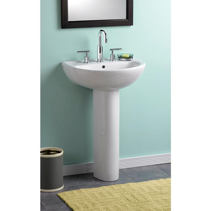 Elevate your bath with the Evolution pedestal sink—durable, space-savvy, and ready for your favorite 4" centerset faucet.