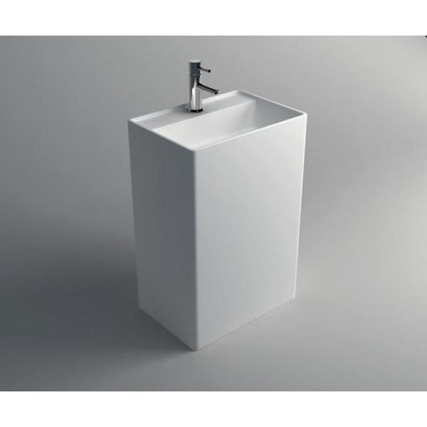 Dyconn Square Freestanding Solid Surface Pedestal Bathroom Sink in Matte White