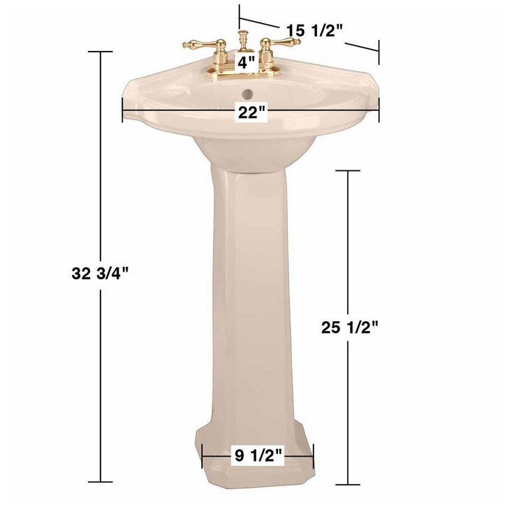 - Portsmouth CORNER space-saving pedestal sink 32 3/4 in. H x 22 in. W x 20 in. proj.