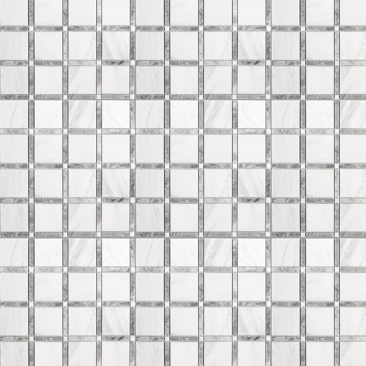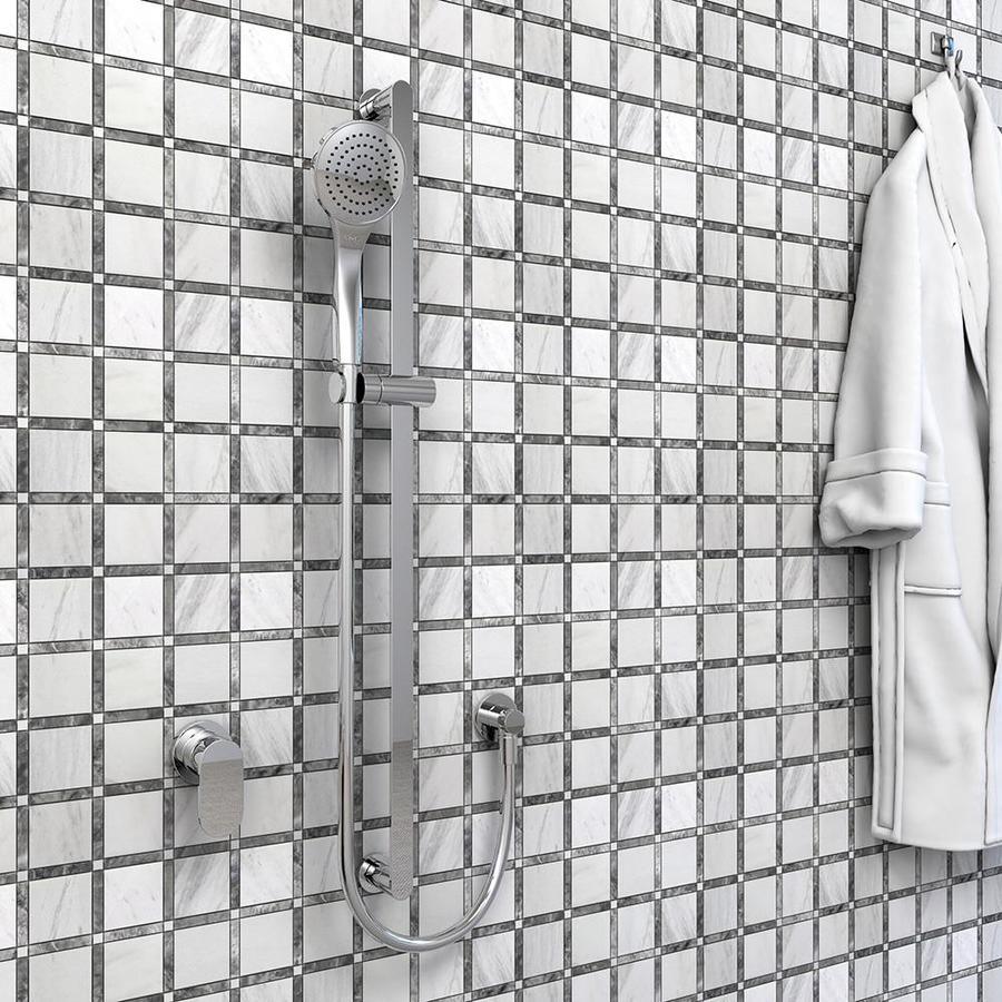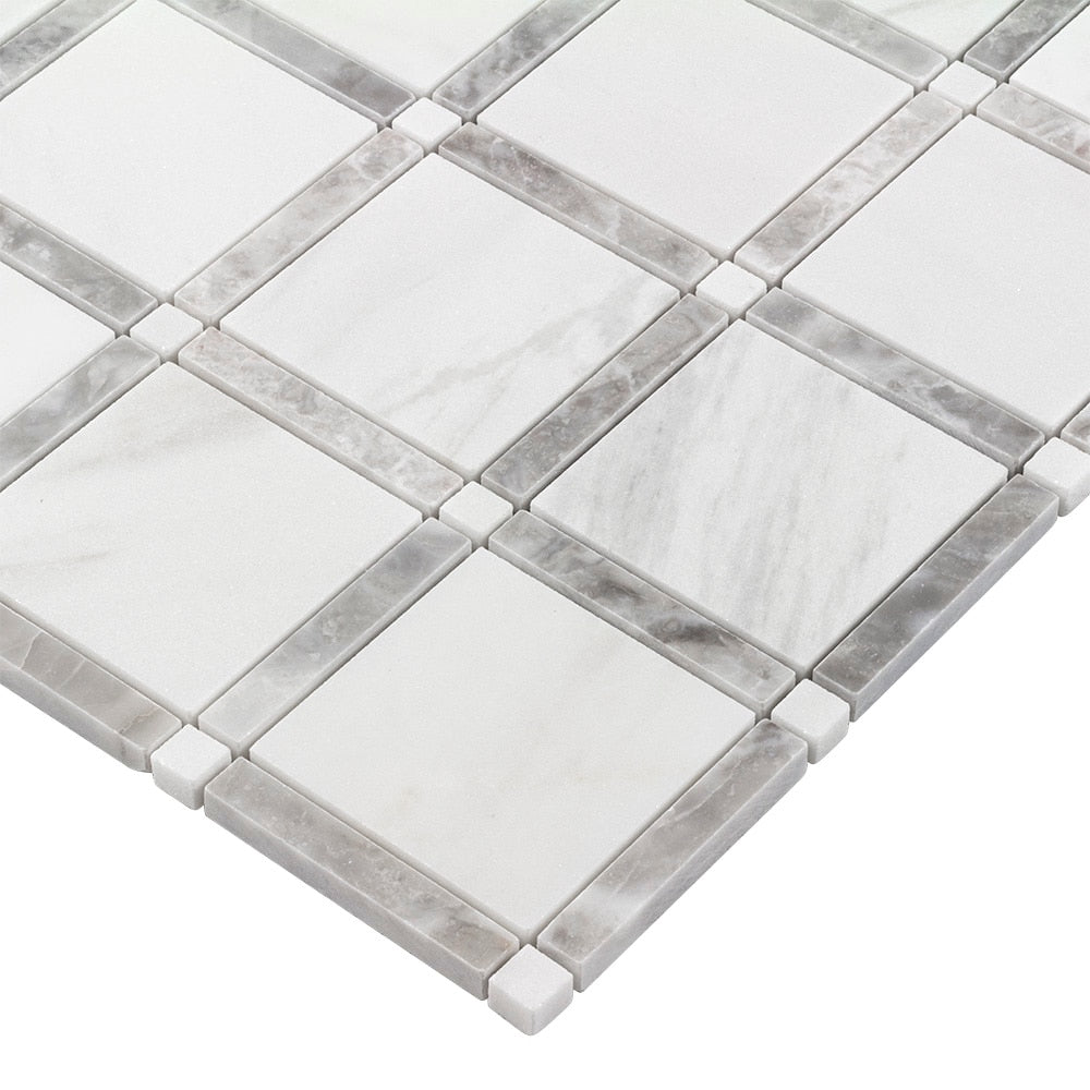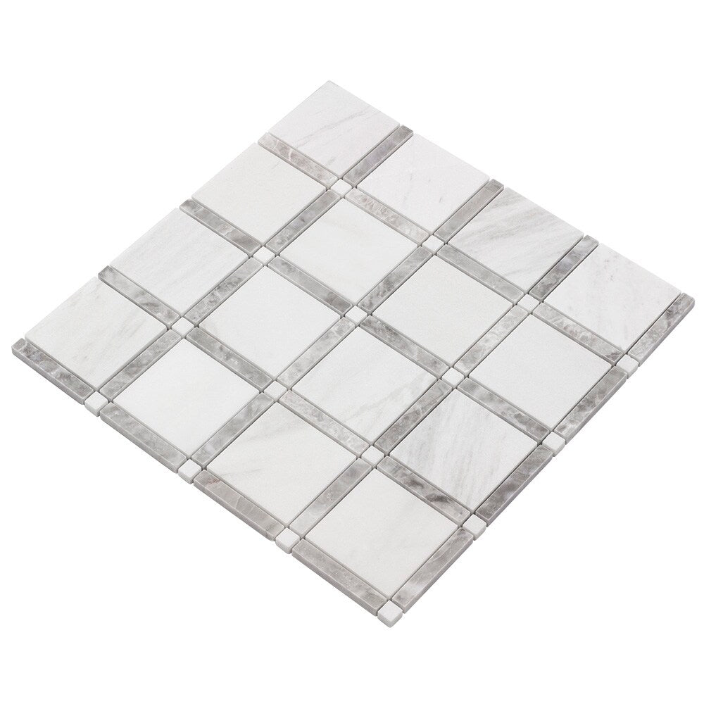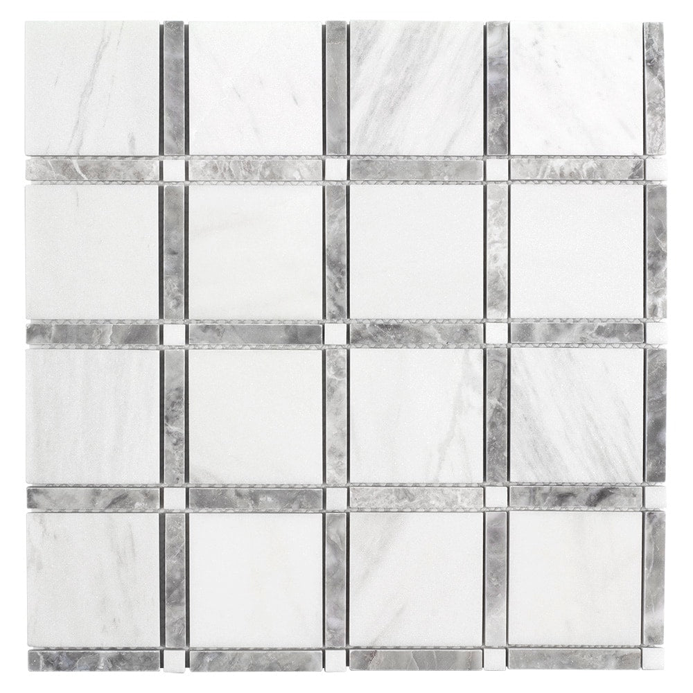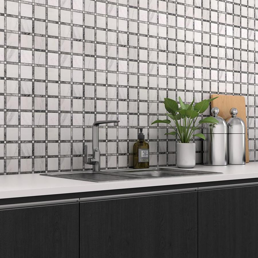 Bring the elegance of natural marble to kitchens, baths, and feature walls with this honed mosaic tile. The 12 x 12-in sheet features uniform square pieces in white and soft gray tones, delivering a classic look that suits interiors or exteriors when properly sealed.