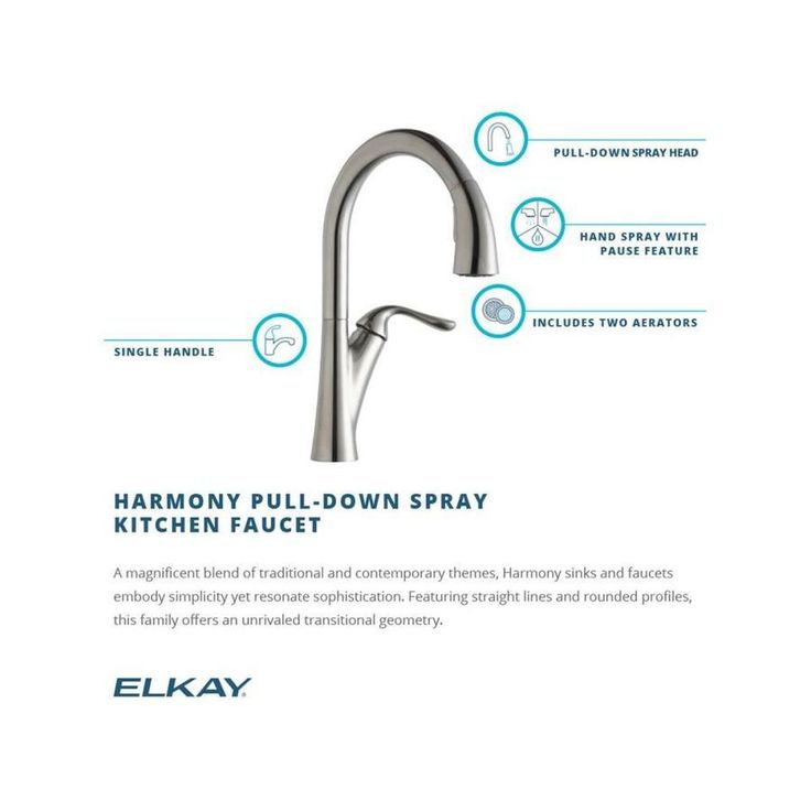 Elkay Harmony Lustrous Steel 1-Handle Deck-Mount Pull-Down Handle Kitchen Faucet