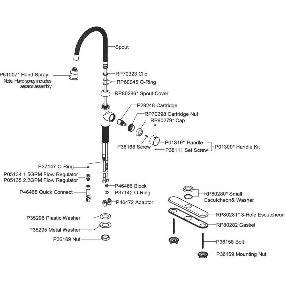 • Water-Saving Aerator: Includes an installed 1.5 GPM aerator to conserve water with optional 2.2 GPM.