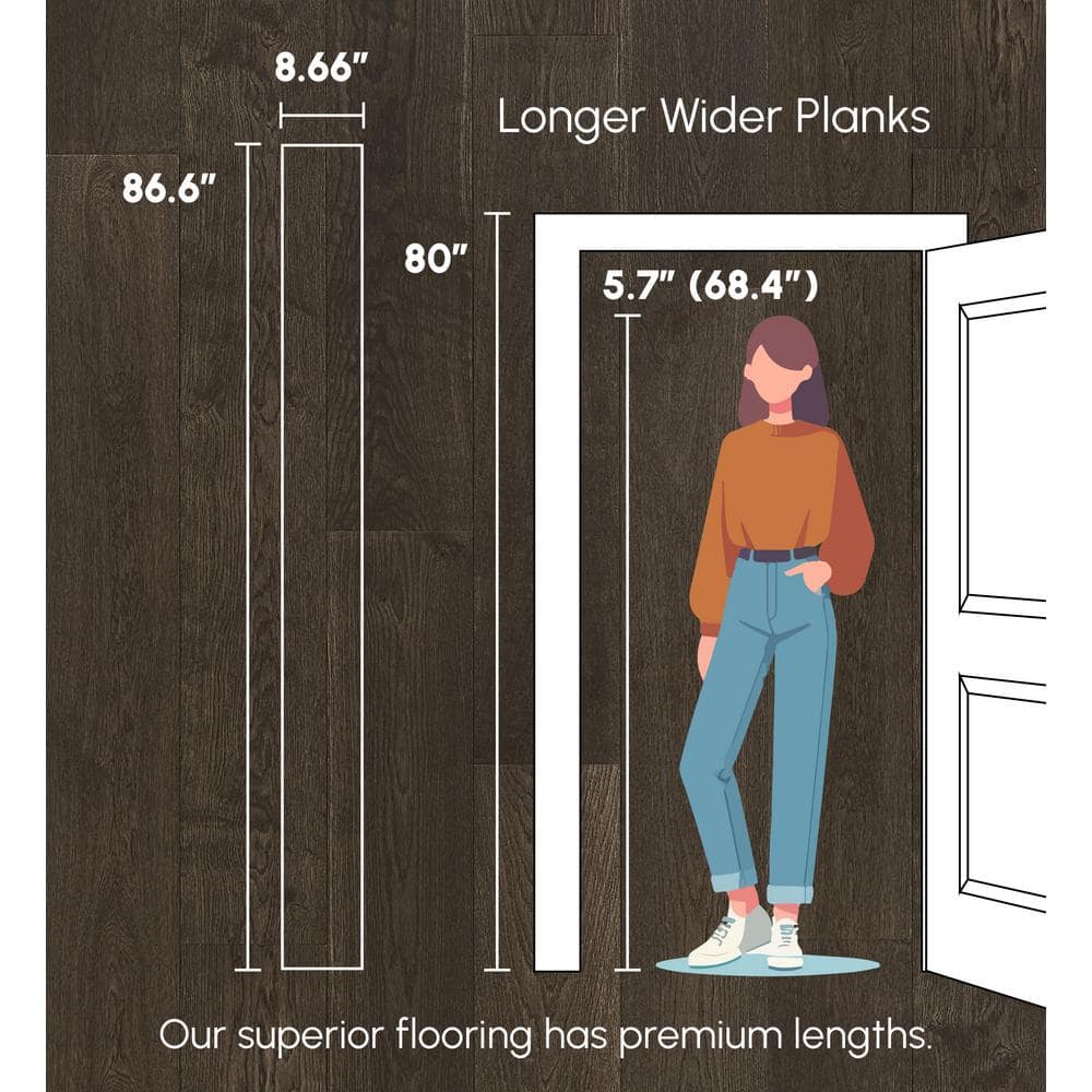 • Long Planks: Extra-long 86.6-inch planks create a seamless and expansive room look.