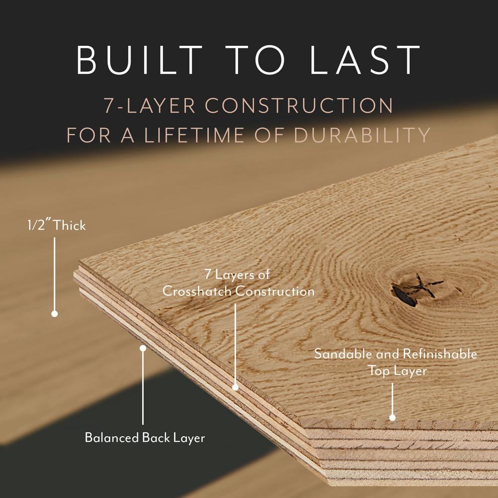 • Refinishing Capability: This 1/2 in. thick plank can be sanded and refinished multiple times, extending its lifespan.