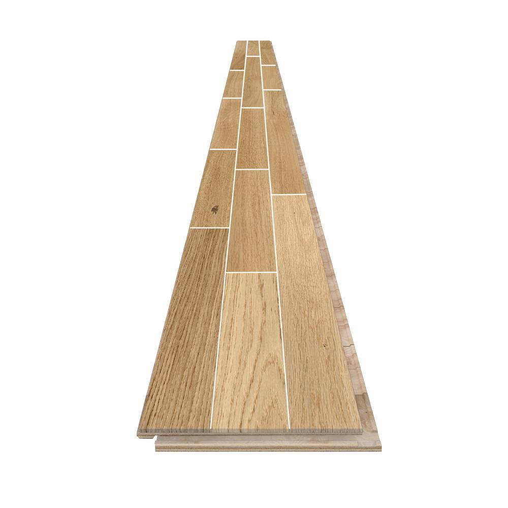 • Design: Wide planks with a wire-brushed surface for a textured look