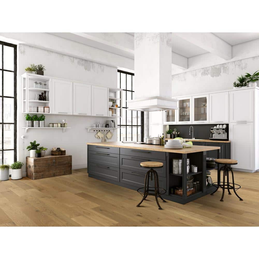 Embrace the rustic elegance of Blue Ridge Hardwood Flooring's Castlebury Wimborne White Oak flooring. Crafted with sustainably harvested Appalachian Oak, this engineered hardwood features a refined, brushed finish with natural variations for a touch of charm. The click-lock installation ensures easy setup, while the flooring's durable, moisture-resistant finish offers long-lasting beauty in any room.