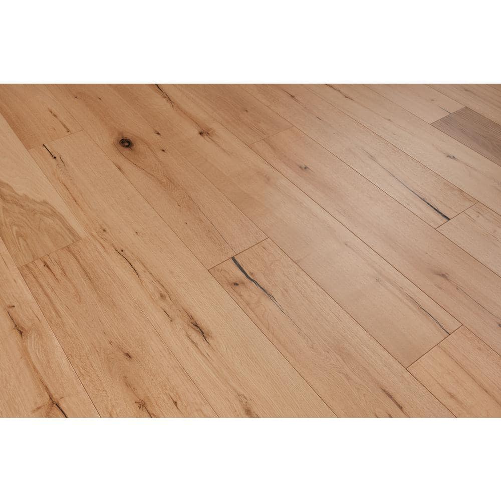 Transform your home with the timeless beauty of Bruce Time Honored Aged Natural White Oak Wire Brushed Engineered Hardwood Flooring. This flooring features a distinct wire-brushed texture and a low gloss finish that adds a rustic yet elegant charm to any room. Suitable for all levels of the home, these planks are designed with versatility and durability in mind, complete with a lifetime residential and five-year commercial warranty.