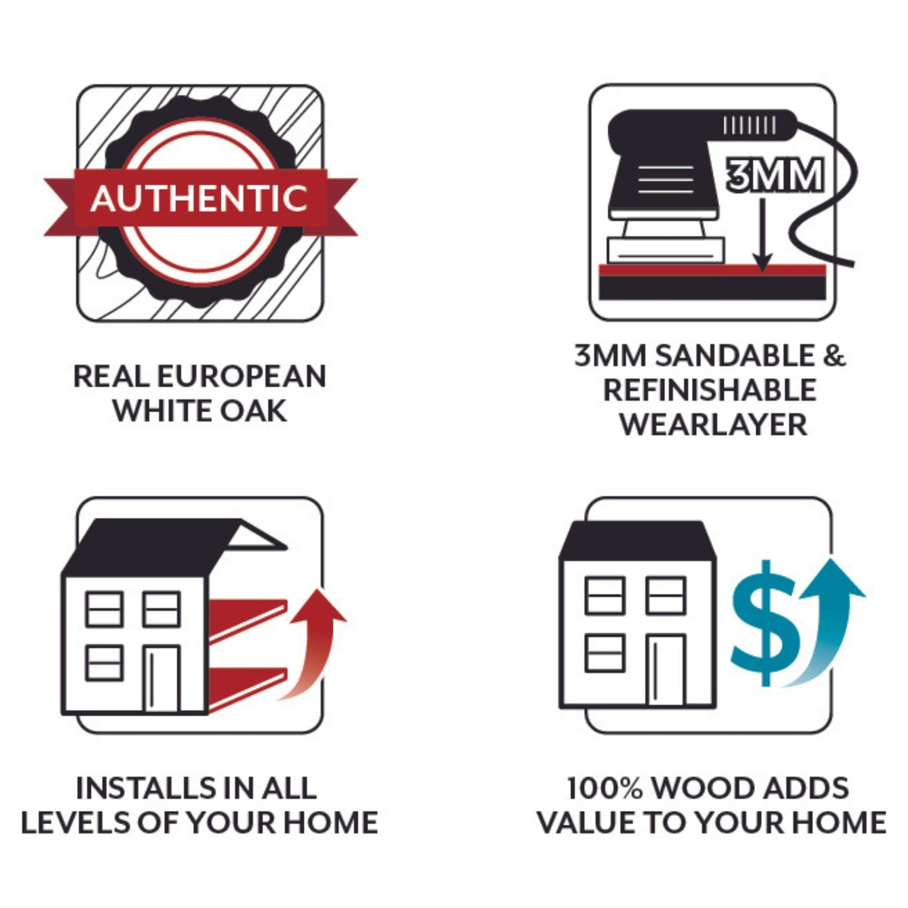 - Real Hardwood: Adds resale value to your home with an authentic European White Oak finish.