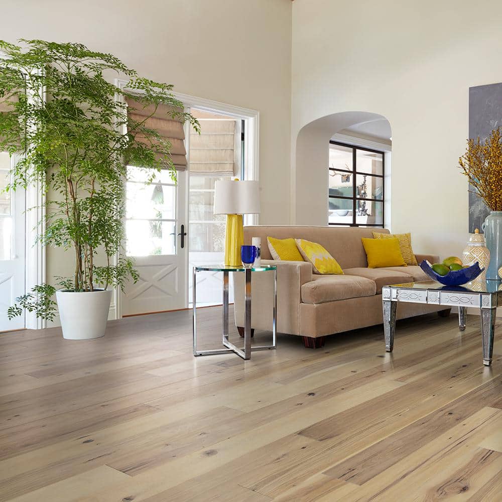 Transform any space with the timeless elegance of Camino Hickory Engineered Hardwood Flooring by Malibu Wide Plank. Featuring hand-stained, wide planks with an elegant wire-brushed finish, this premium flooring option brings the beauty of natural hickory to your home, blended with the durability of a modern urethane finish. Backed by a lifetime residential warranty and certifications for safety, it’s perfect for both residential and light commercial use.