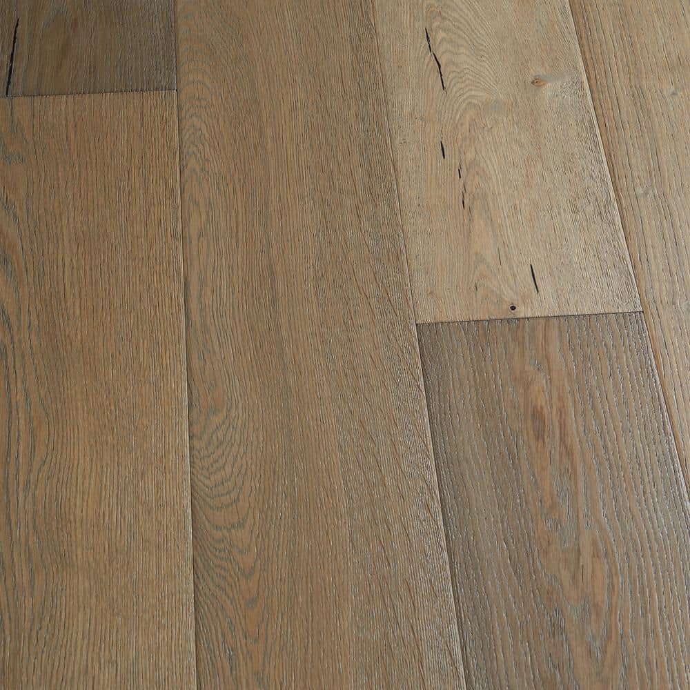 Transform your home with the elegant Castle Island French Oak Engineered Hardwood Flooring from Malibu Wide Plank. This flooring features a stylish wire-brushed finish and a durable click-lock design for easy installation. Its seven coats of ultra-low gloss urethane ensure lasting beauty and longevity.