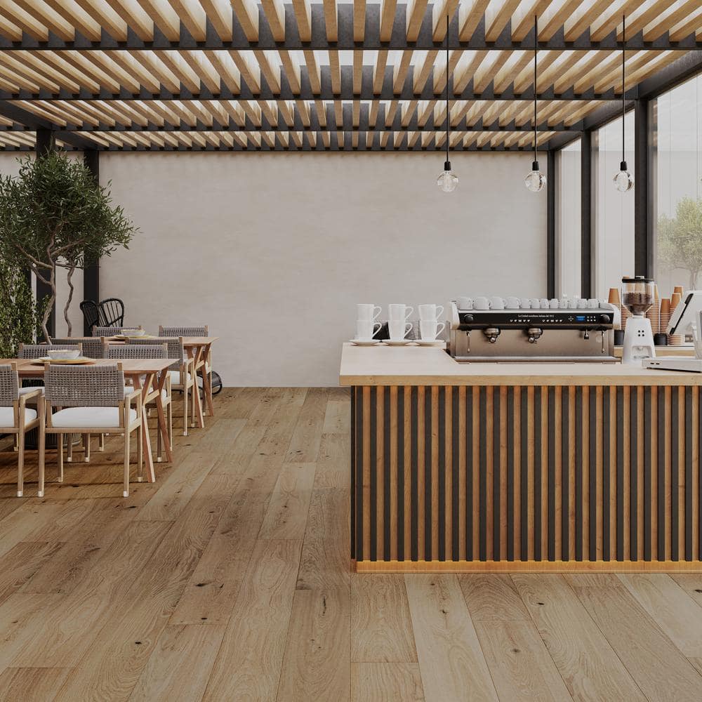 Bring luxury and durability to your home with Malibu Wide Plank's Crown French Oak Engineered Hardwood Flooring. Featuring a refined wire-brushed texture and a robust 2mm veneer, this flooring combines aesthetic appeal with unrivaled strength, perfect for any residential or light commercial space.
