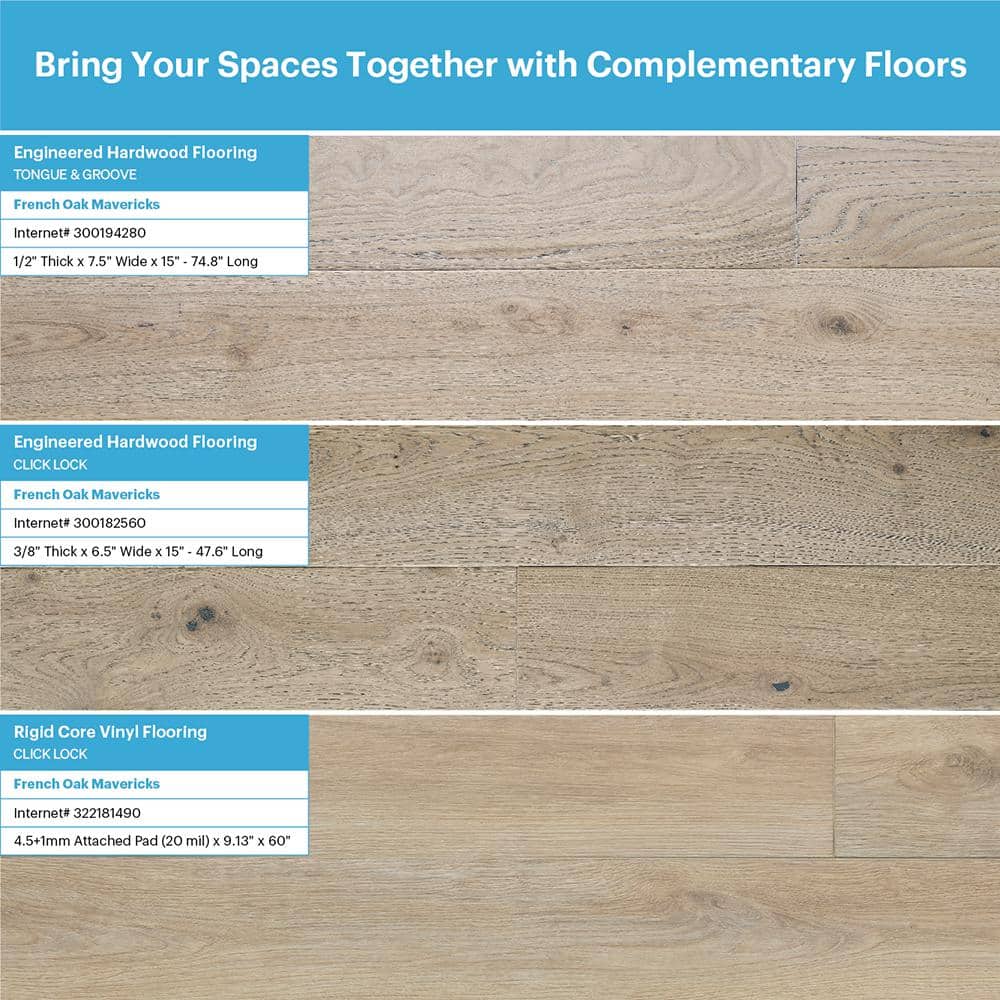 Malibu Wide Plank Mavericks French Oak 1/2 in. T x 7.5 in. W T&G Wire Brushed Engineered Hardwood Flooring(1398.6 sqft/pallet) CXS