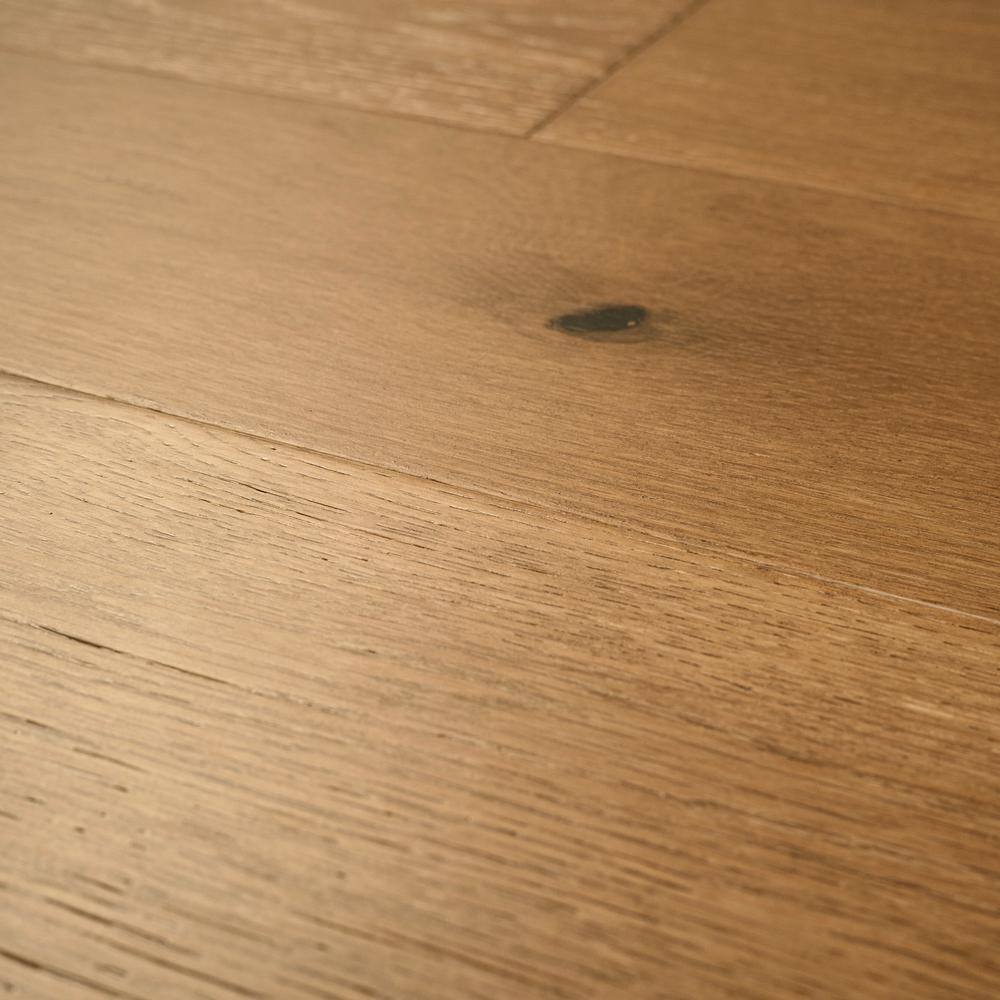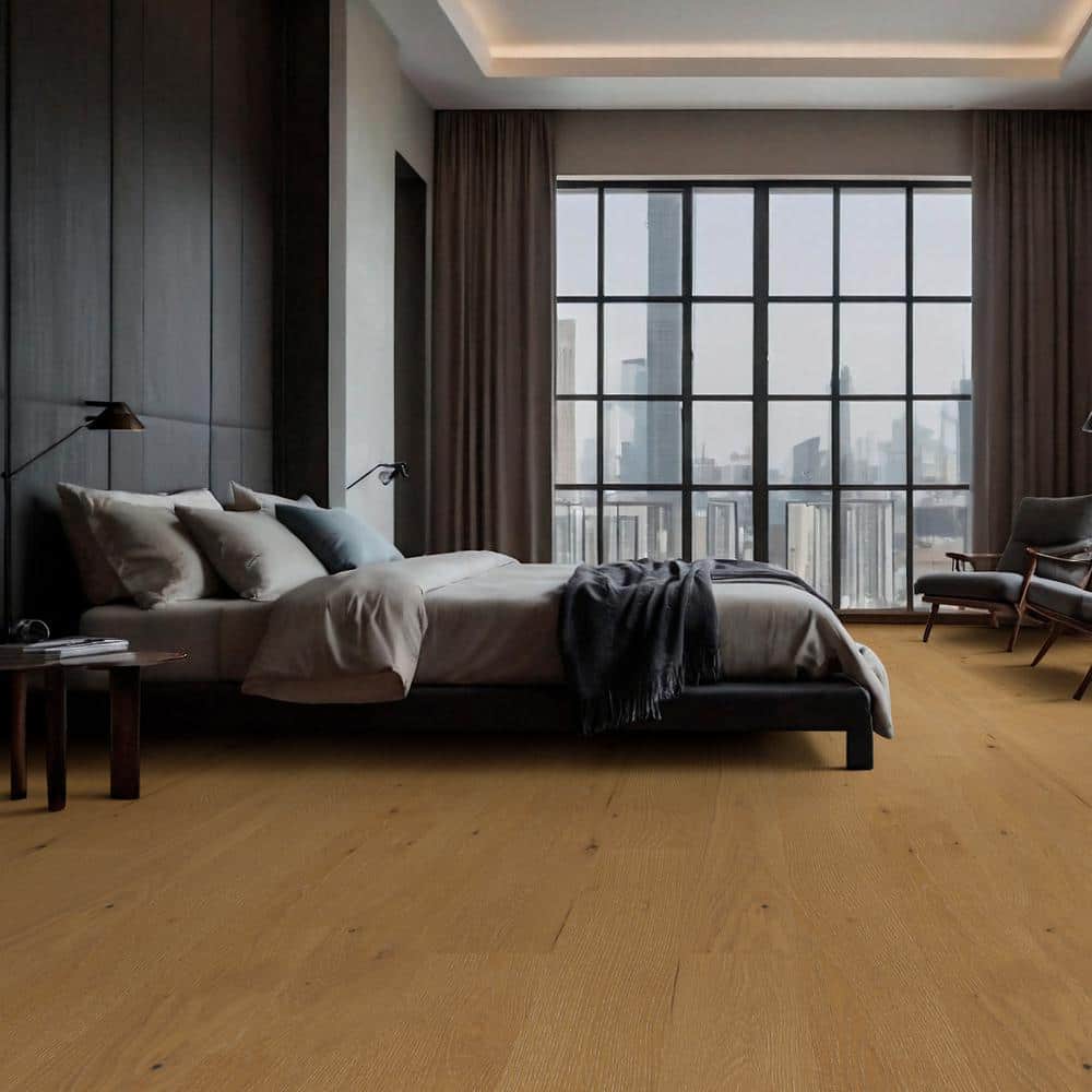 Evoke a refined atmosphere in your interiors with the Amber Meadows Engineered Hardwood Flooring. Each wide plank, accentuated by its soft golden-brown hues and natural wood grain, magnifies the allure of any space it graces. Lay it diagonally to create a dynamic flow and effortlessly connect rooms with seamless transitional beauty. More than just a floor, it's an epitome of luxurious living, beautifully enduring the test of time.