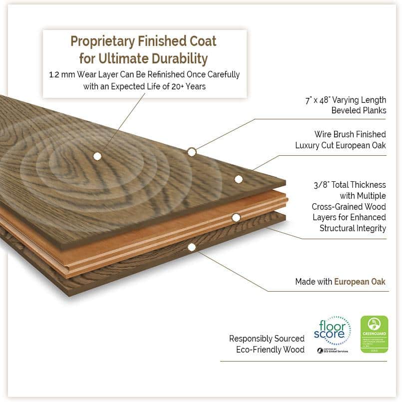 MSI Baker Cove White Oak 3/8 in. T x 7 in. W Tongue and Groove Engineered Hardwood Flooring (560.88 sq. ft./pallet)