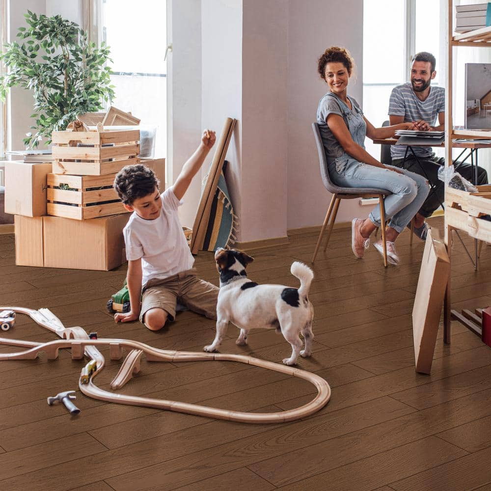A: While this engineered hardwood is durable, it is not designed for high-moisture areas such as bathrooms or basements prone to flooding. It's best used in dryer, indoor settings.
