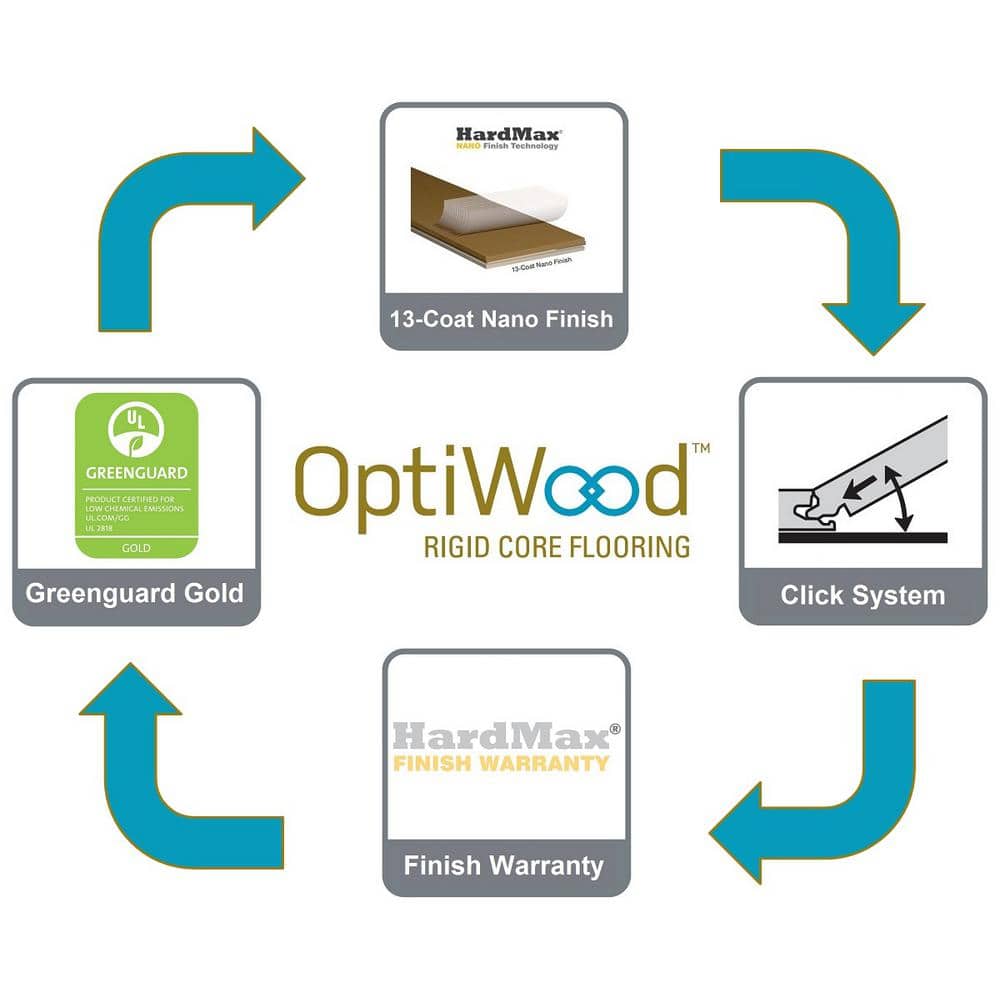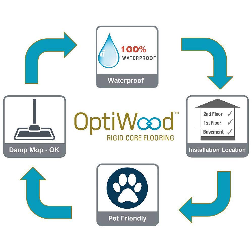 Elevate your home with the elegant and durable OptiWood Tanned Leather Birch Engineered Hardwood Flooring. Designed for both beauty and practicality, this flooring is 100% waterproof and scratch-resistant. Featuring easy click-lock installation, it's perfect for both DIY enthusiasts and pros.