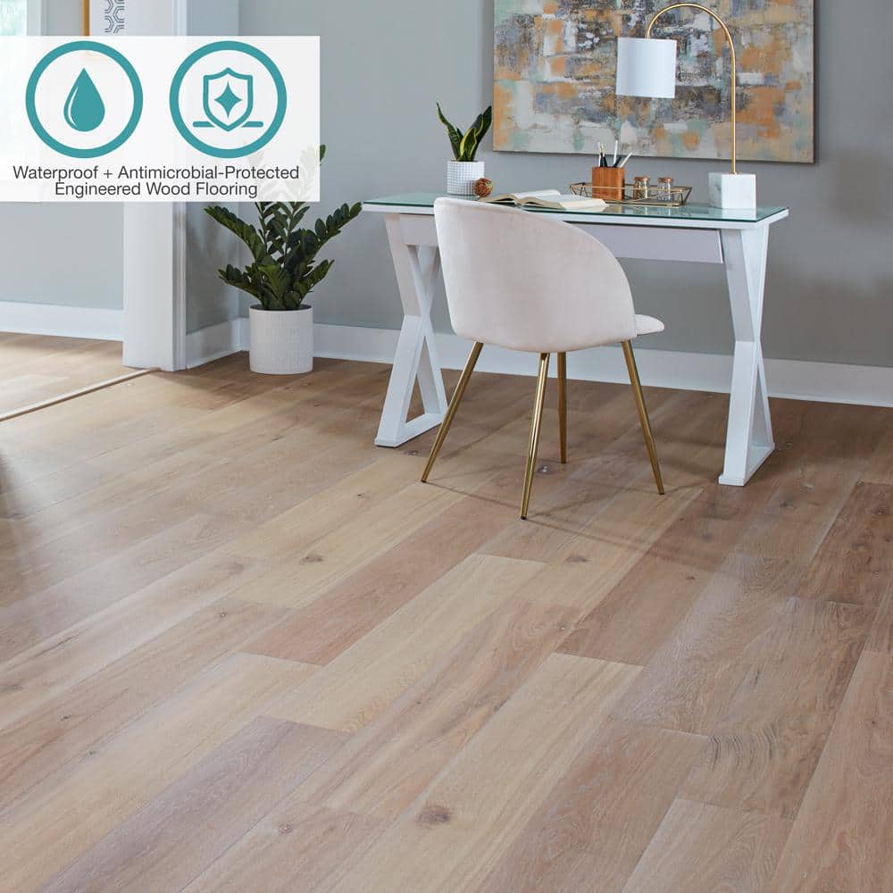 Transform your space with Pergo Defense+ Beachwood Park Oak, a waterproof engineered hardwood flooring that offers unmatched durability and style. Featuring antimicrobial technology and a soft matte texture, these oak planks provide a luxurious look while resisting dents, scratches, and stains. Ideal for any room, these floors are a perfect blend of beauty and practicality, requiring minimal maintenance and simple installation.