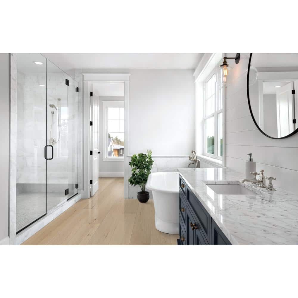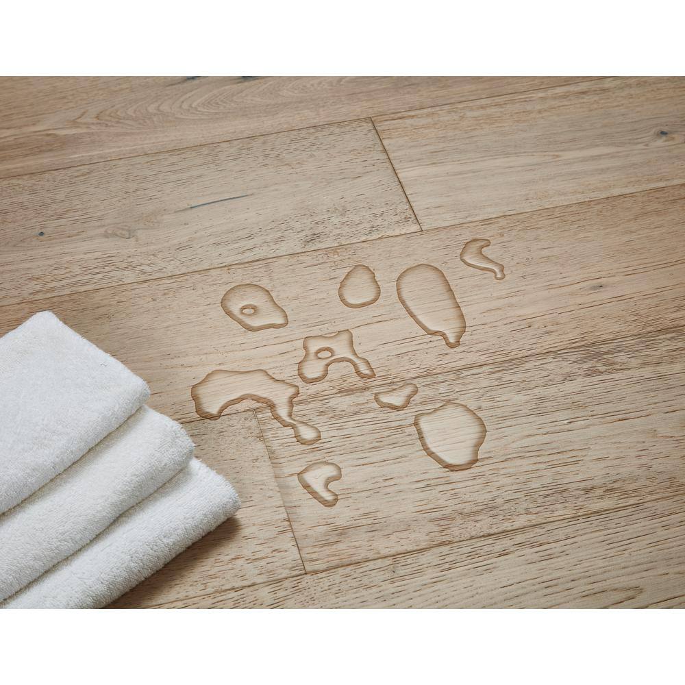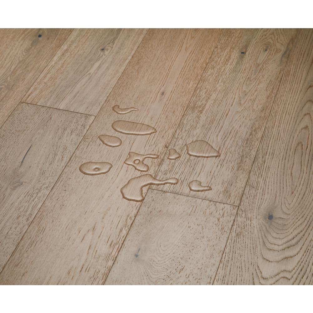Sure+ Waterproof Belgian Linen White Oak Flooring combines elegance with practicality, featuring a click-lock installation and a wire-brushed finish to bring a touch of sophistication to any room. Constructed with durable white oak and a multi-layer aluminum oxide coating, this engineered hardwood is waterproof, scratch resistant, and suitable for even the busiest households. Enjoy effortless cleaning and a visually appealing low-gloss finish, perfect for creating a warm, inviting space in your home.