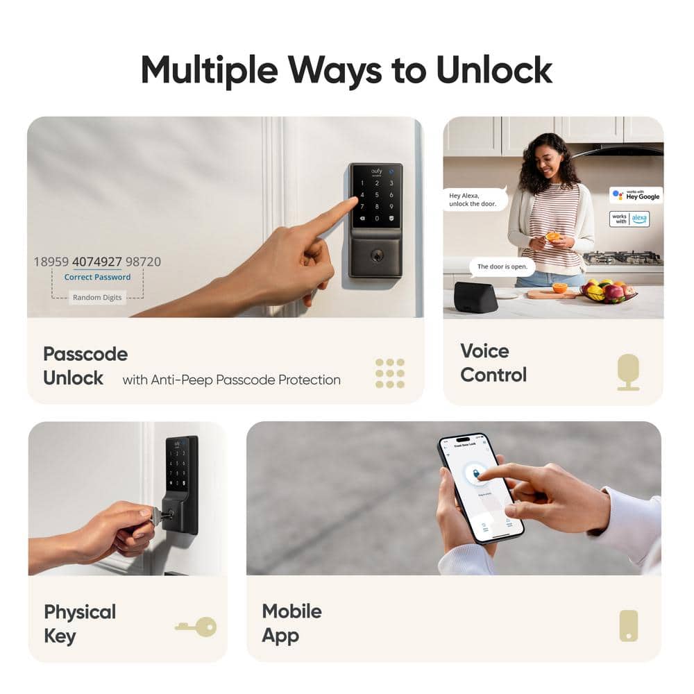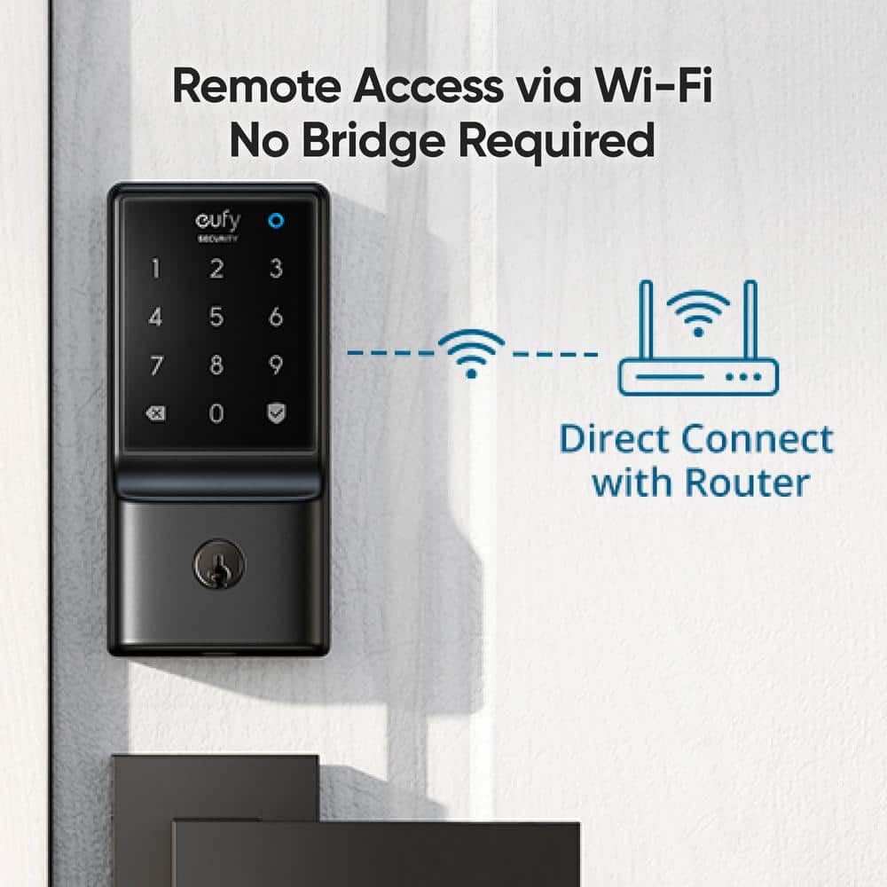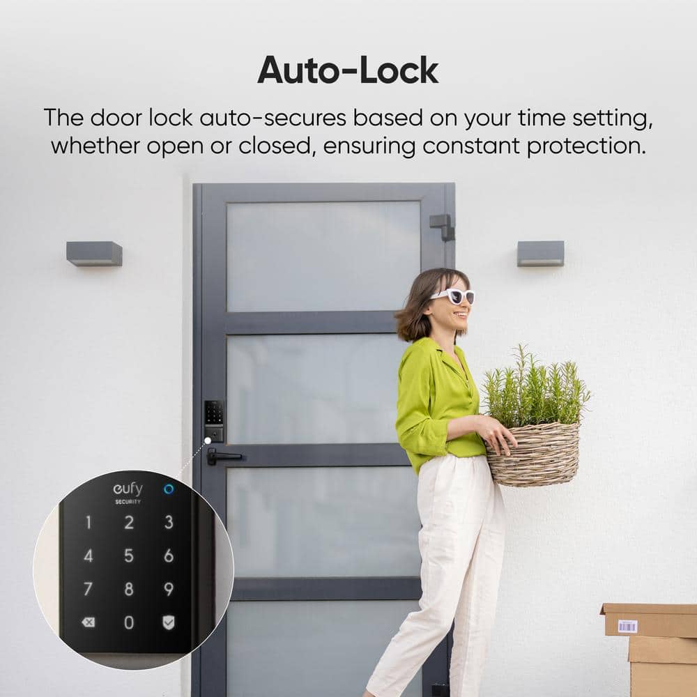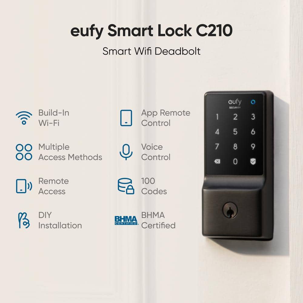 eufy Security C210 Black Smart Lock Wi-Fi with 5-in-1 Ways to Unlock by Mobile App, Keypad, Key, Apple Watch and Smart Assistants