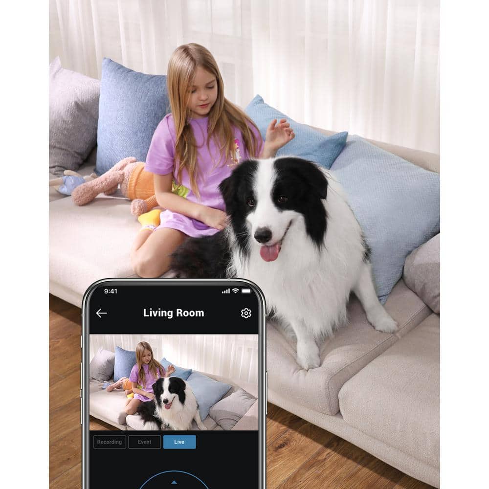 - 2K Resolution: Delivers crystal-clear image quality to precisely monitor any indoor space.