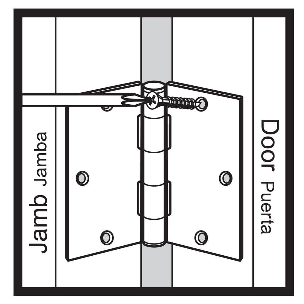 Heavy-duty 3-1/2 in. steel butt hinge with a satin chrome finish for commercial interior doors. Features a non-removable pin and full mortise 5‑knuckle design for secure, smooth operation. Includes mounting screws for easy installation.