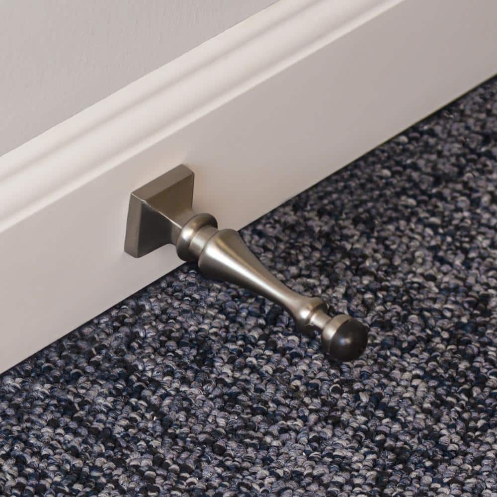 A durable, decorative baseboard-mounted door stop that protects walls and doors with a rubber bumper tip. Cast metal construction with a satin nickel finish blends with modern hardware and installs easily using the built-in screw.