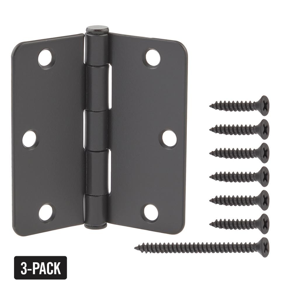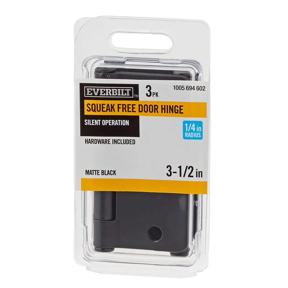 Everbilt 3-1/2 in. x 1/4 in. Radius Matte Black Smooth Action Door Hinge (3-Pack)