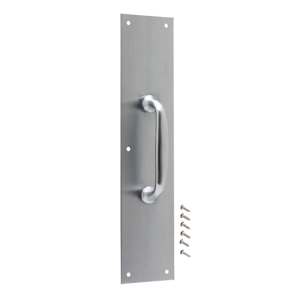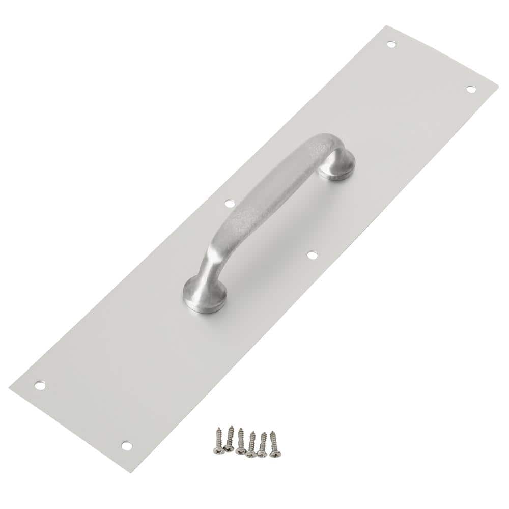 Protect high-traffic doors and add a clean, modern accent with this satin aluminum pull plate. Designed for commercial or residential use, it shields door surfaces from wear while providing a comfortable grip handle. Predrilled holes and included screws make installation quick and straightforward.