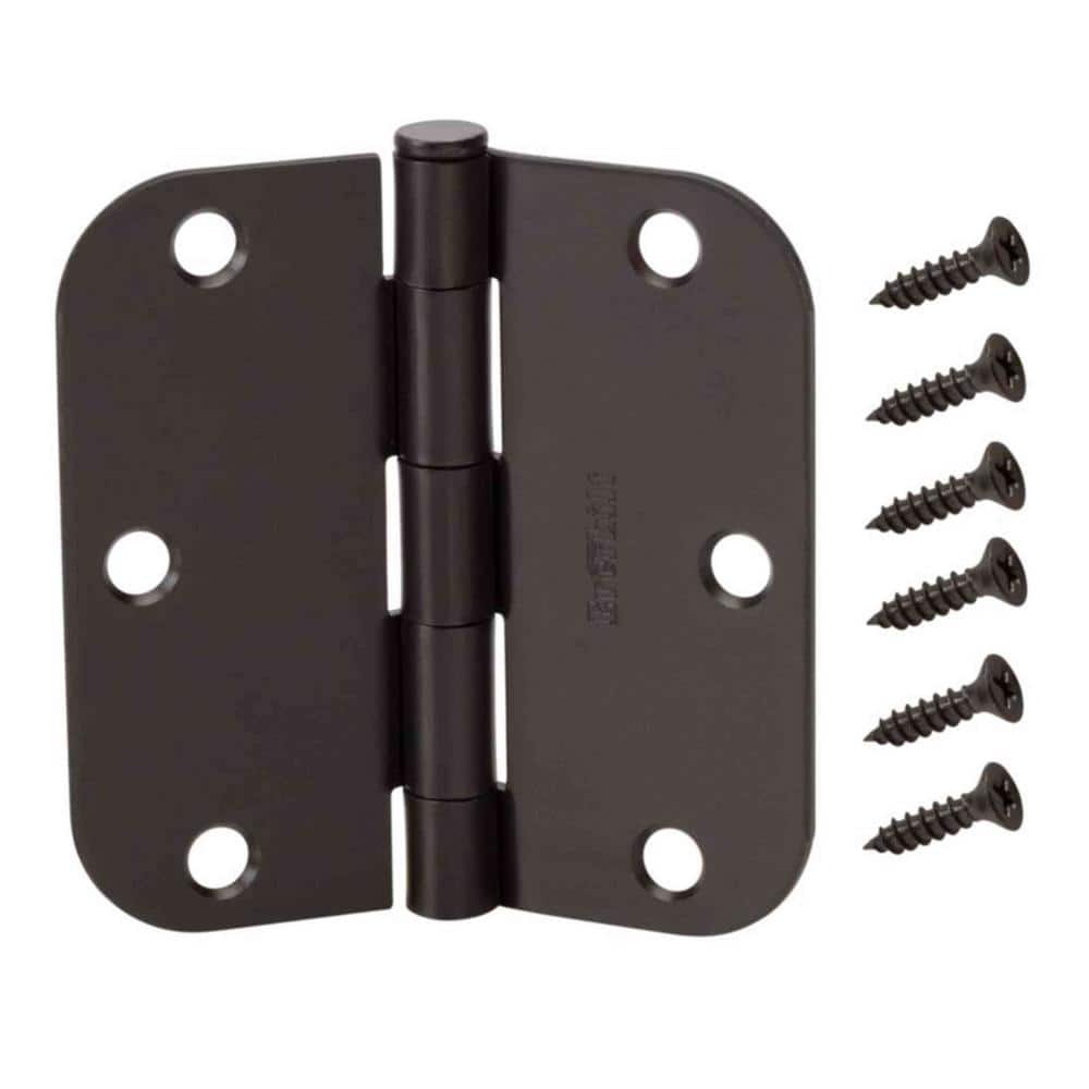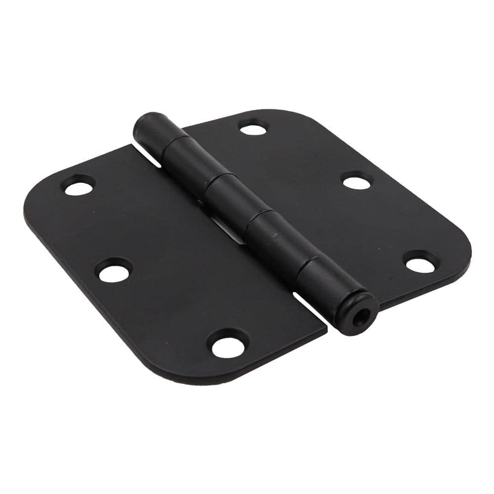 Durable steel door hinges with a matte black finish for clean, modern updates. Smooth-action, lubricated knuckles and a removable pin make interior door installation quiet and easy. Includes mounting screws; sized 3-1/2 in. with 5/8 in. radius corners.