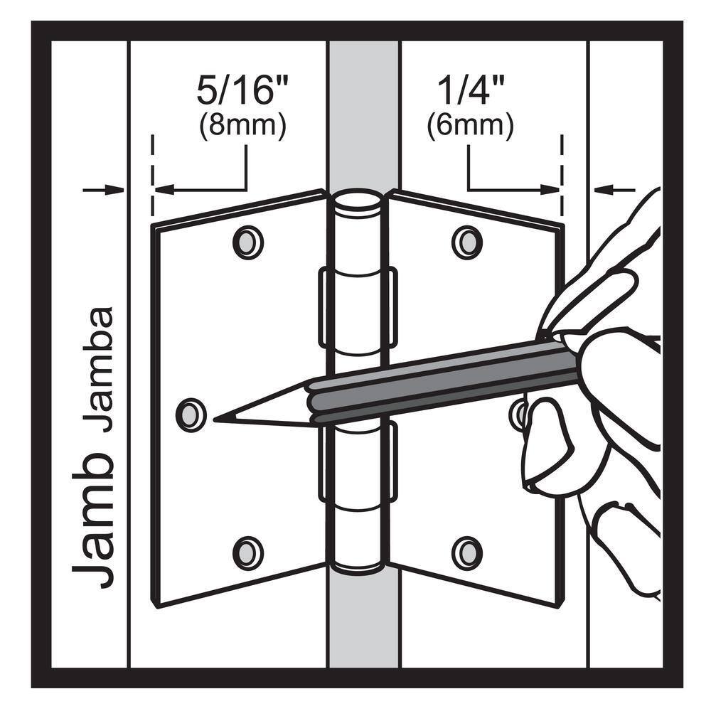• Standard Fit: 3-1/2 in. hinges with 5/8 in. radius corners for common interior mortises