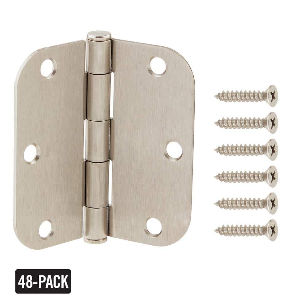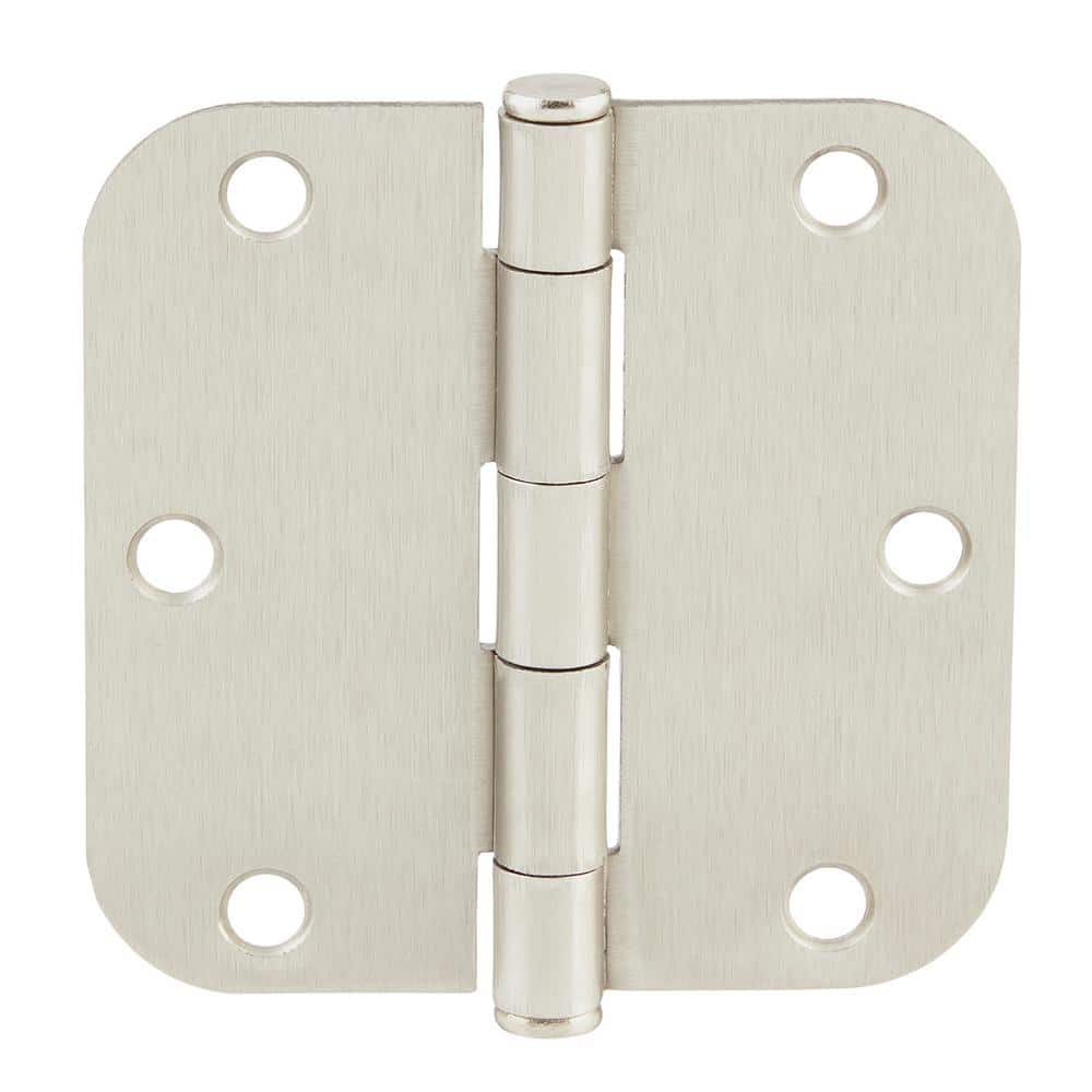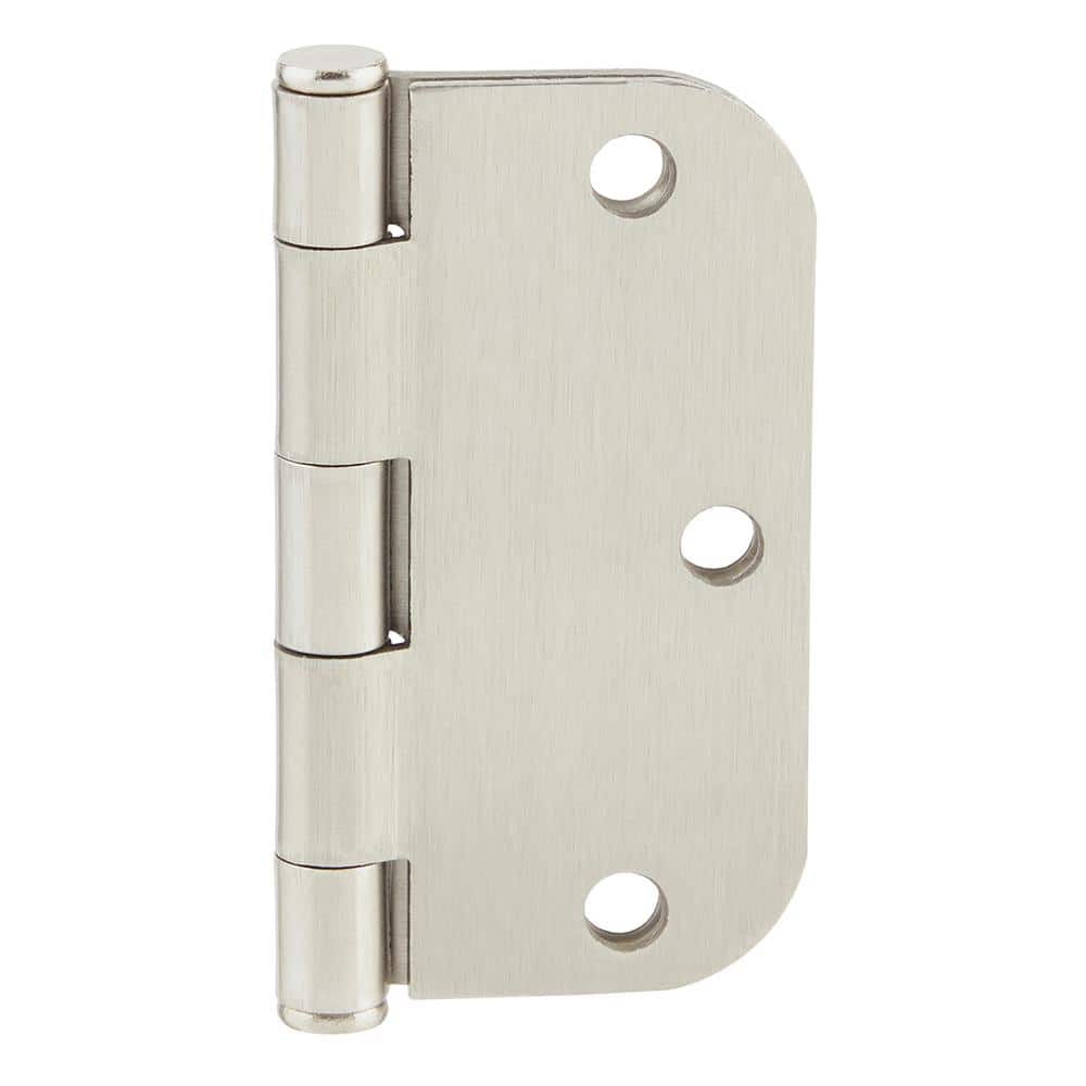 These Everbilt 3-1/2 in. x 5/8 in. radius butt door hinges feature a durable steel build with a satin nickel finish for clean, modern looks. A removable pin simplifies door installation and removal, and matching screws are included for a straightforward mortise mount on interior residential doors.