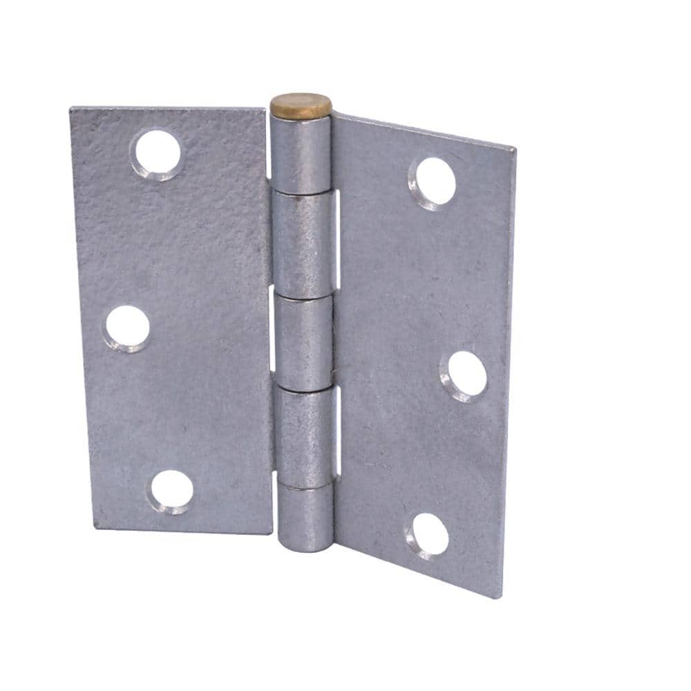 Durable steel hinge with a galvanized finish designed for interior or exterior utility doors and projects. Features a broad, 5‑knuckle full mortise design with rust-resistant protection for long-lasting performance.