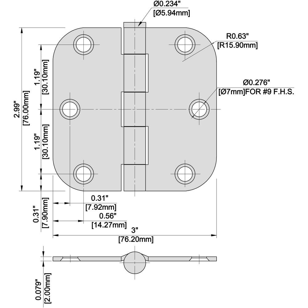Everbilt 3 in. Oil-Rubbed Bronze Door Hinge, 5/8 in. Radius