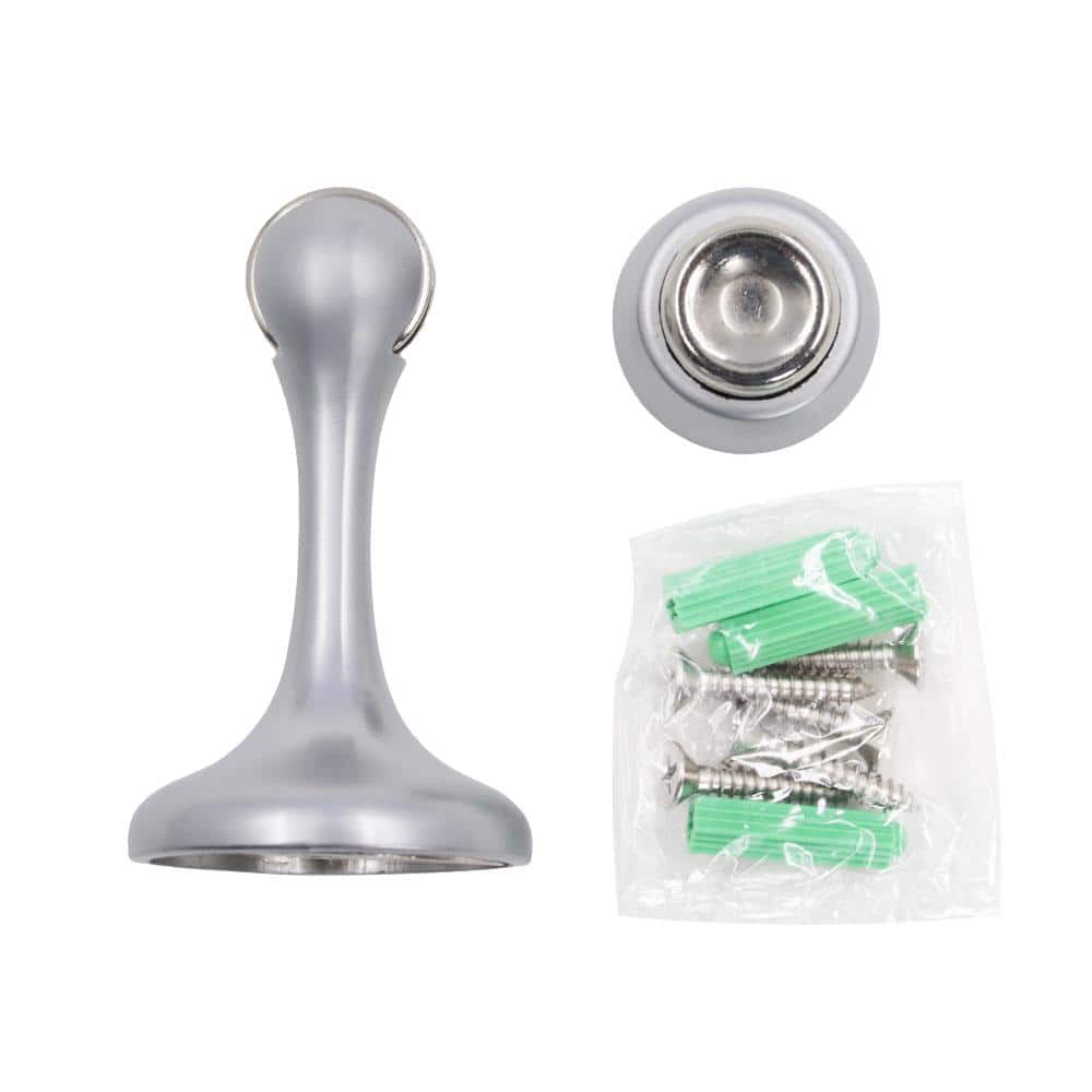 Keep doors open and protect walls with this Everbilt magnetic door stop. The satin nickel finish complements most hardware, while the strong magnet holds doors securely until pulled free. Includes mounting screws and anchors for quick installation on wall or floor.