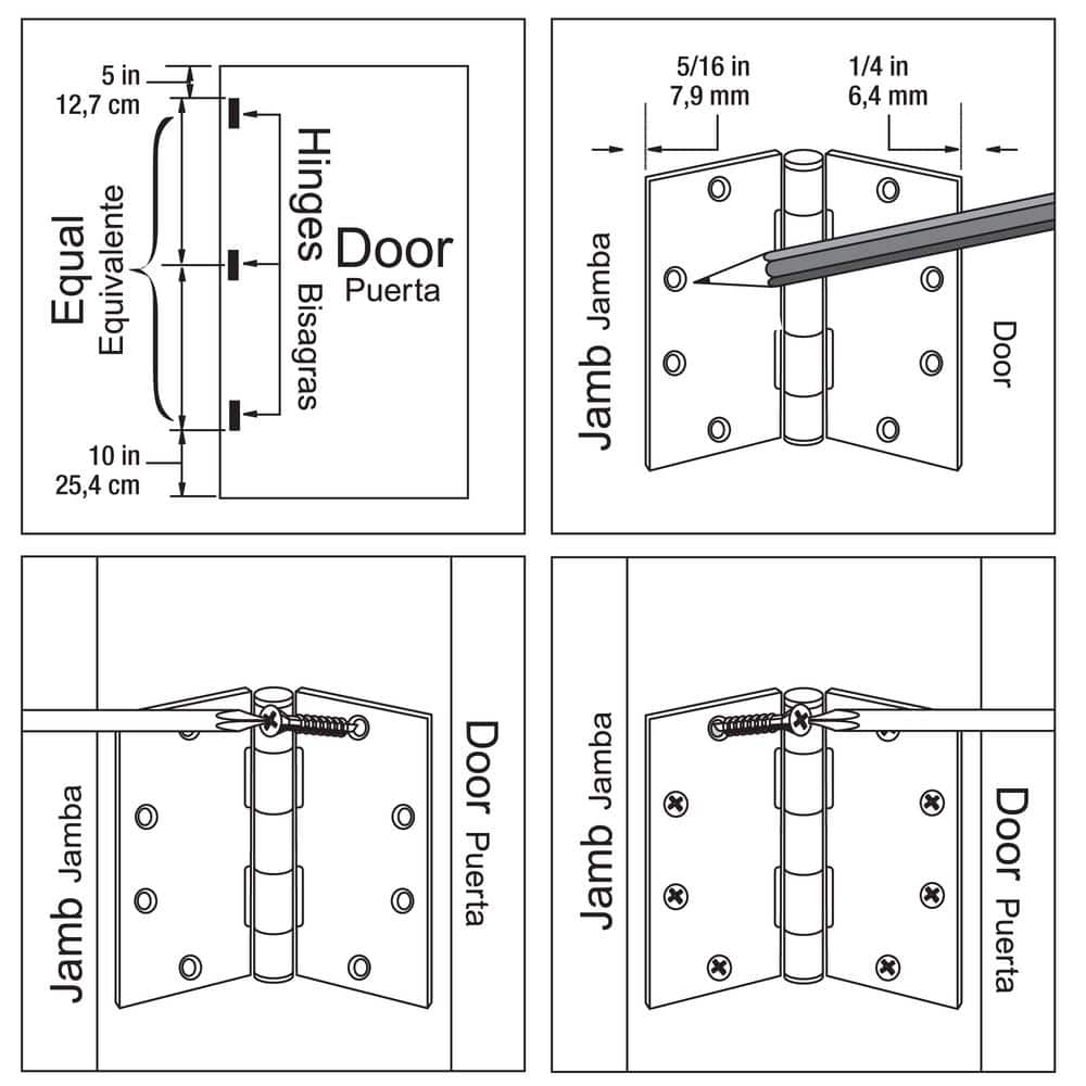 - Square Corner, Butt Style: 4-1/2 in. x 4-1/2 in. hinge for mortised installations; 8-hole half-moon pattern