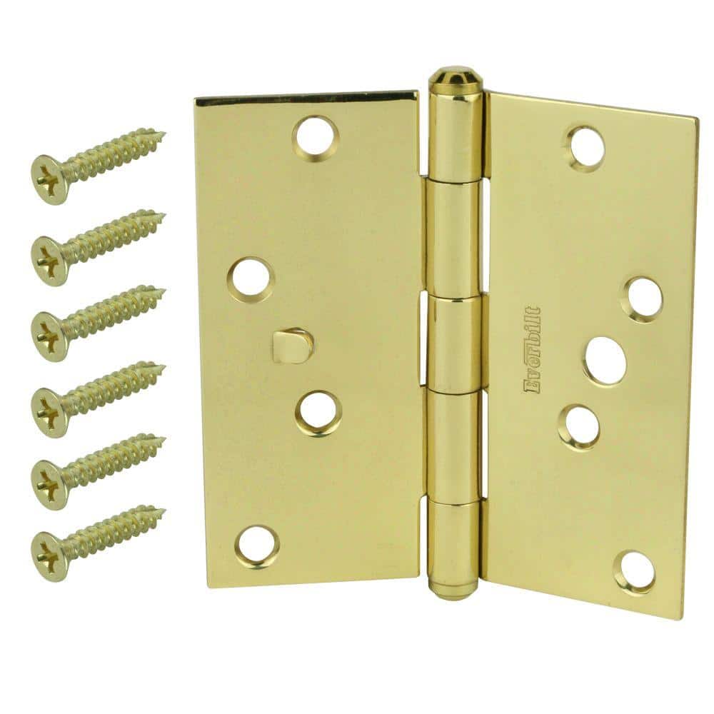 This Everbilt 4 in. square corner security hinge is crafted from solid brass for lasting durability and smooth operation. A removable pin and included mounting screws make installation straightforward for interior residential doors.