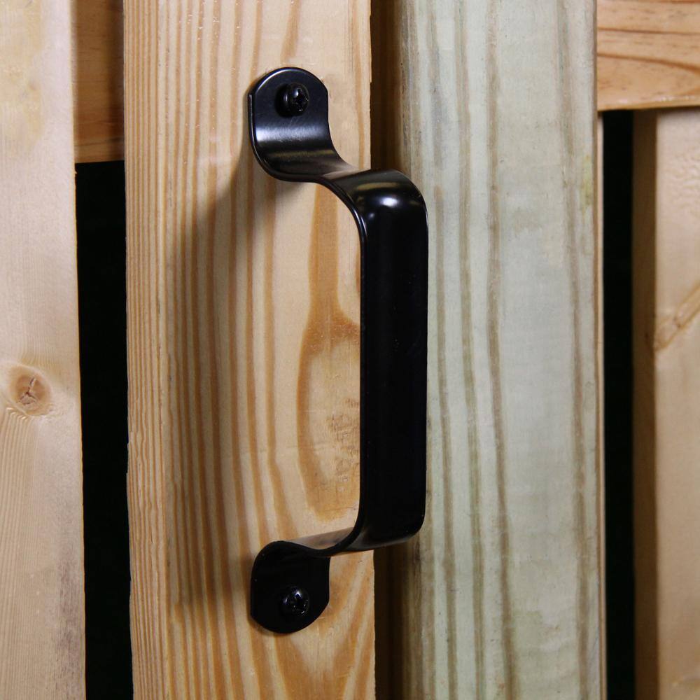 A rugged steel pull for gates, sheds, and barn doors with a durable black finish. Non-handed utility design offers a comfortable grip and installs easily with included hardware.