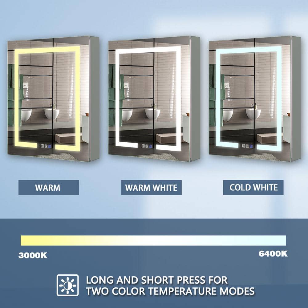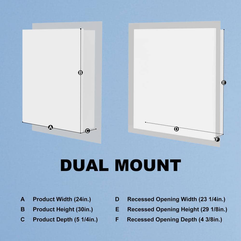 ExBrite 24 in. W x 30 in. H Rectangular Silver Aluminum Recessed/Surface Mount Left Dimmable Medicine Cabinet with Mirror