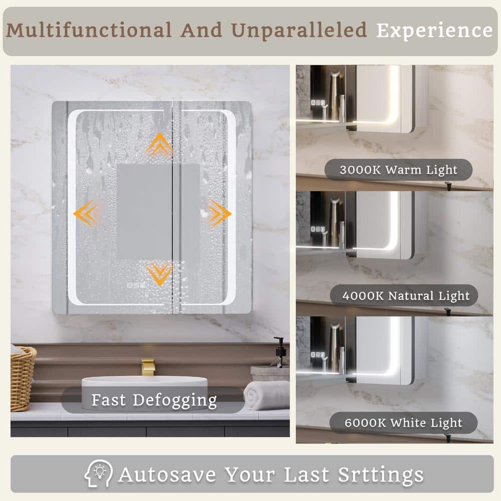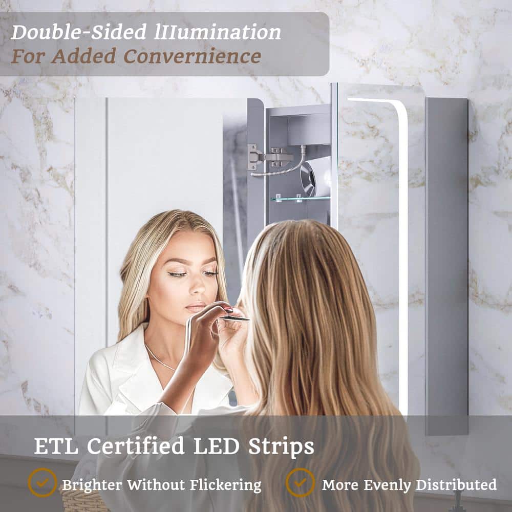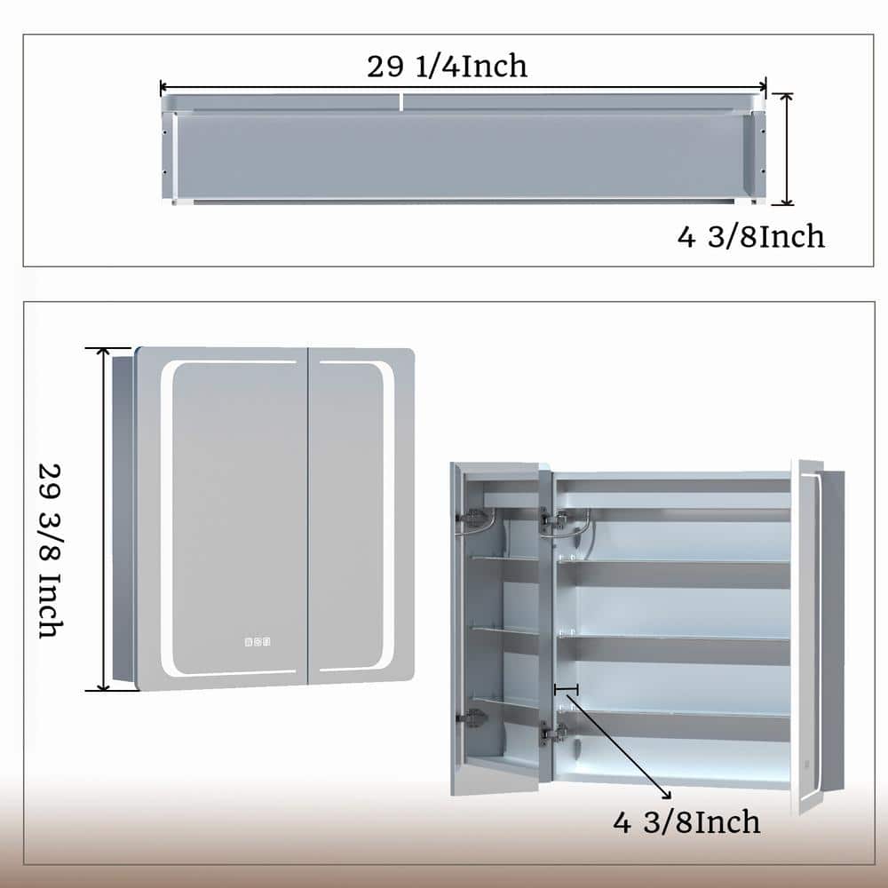 ExBrite Vogue 30 in. W x 32 in. H, Rectangular Silver Aluminum Recessed/Surface Mount Dimmable Medicine Cabinet with Mirror LED