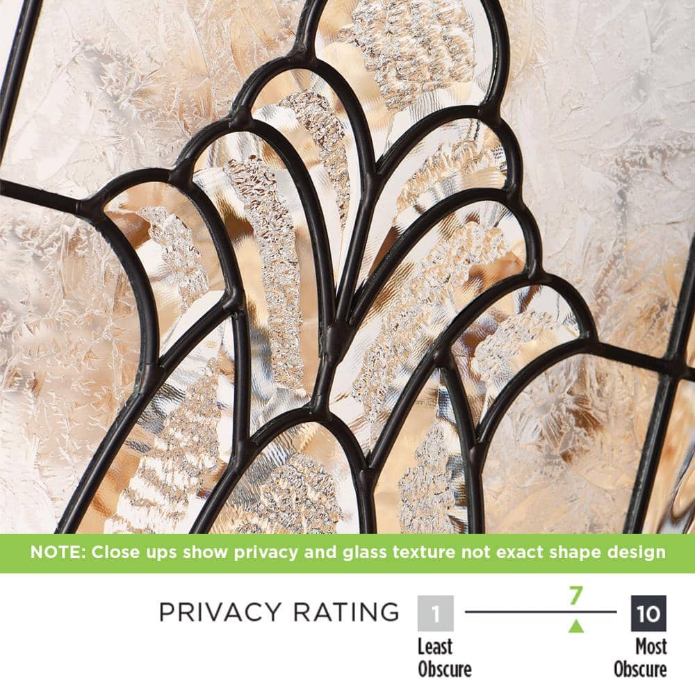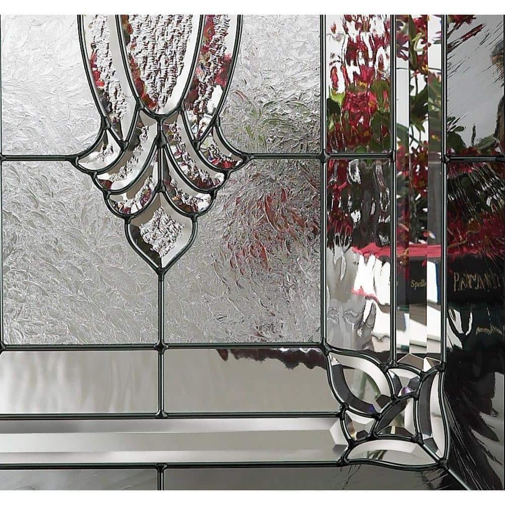 - Decorative Insulated Glass: 1/4 lite center-arch, triple-pane tempered assembly with antique black caming for privacy and curb appeal