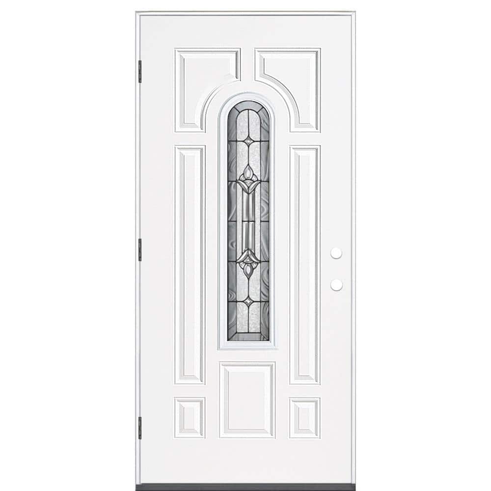 Masonite Providence 36 in. x 80 in. Center Arch Primed White Right-Hand Inswing Steel Prehung Front Exterior Door with Brickmold