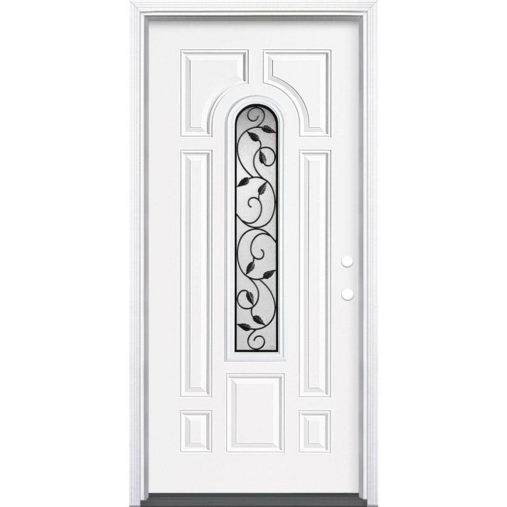 Masonite 36 in. x 80 in. Pergola Center Arch Left-Hand Inswing Primed Steel Prehung Front Exterior Door with Brickmold
