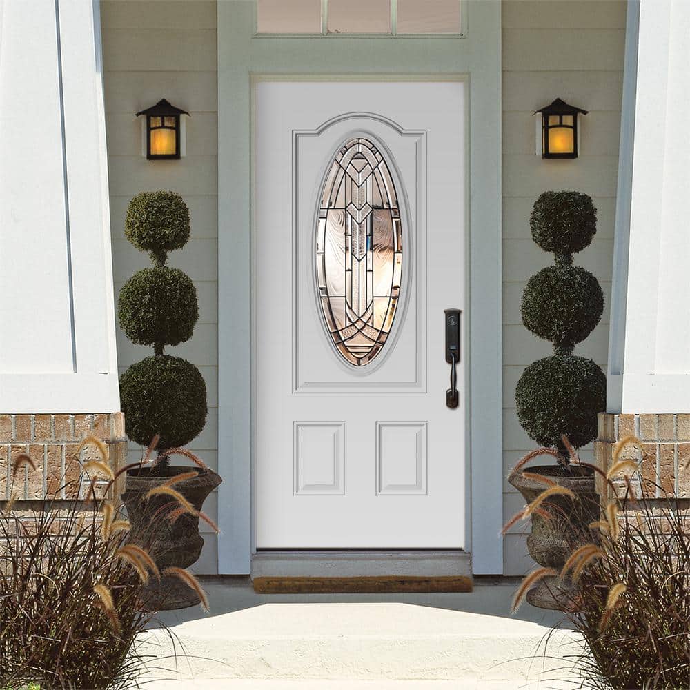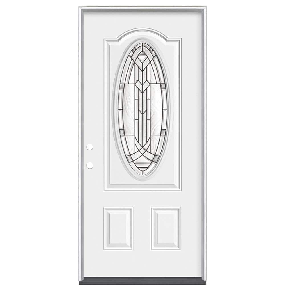 Masonite 36 in. x 80 in. Chatham 3/4 Oval-Lite Right-Hand Inswing Primed Steel Prehung Front Exterior Door