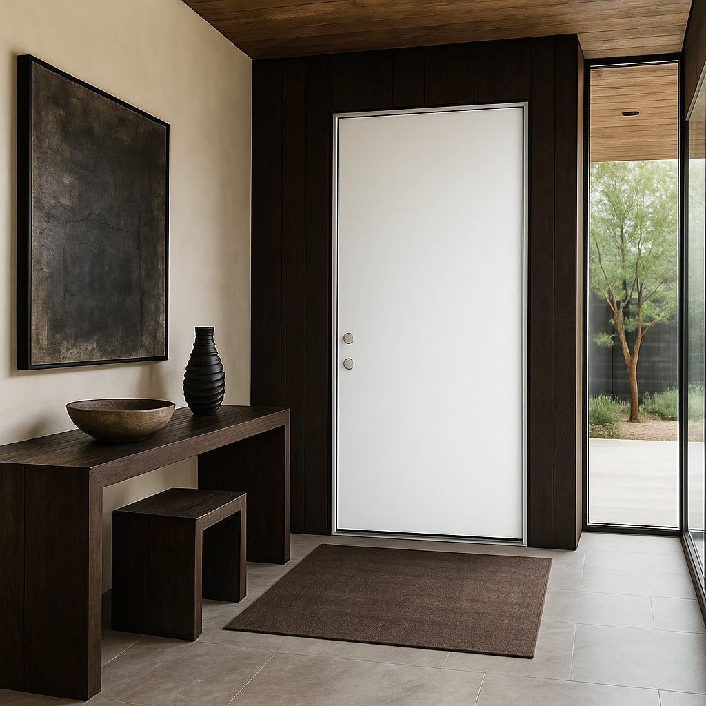 Channeling the timeless elegance of minimalism, this flush steel exterior door transforms any entryway into a statement of refined simplicity. The smooth, primed surface invites creative expression—paint it bold for a pop of personality or keep it crisp for understated sophistication. Its robust steel construction and subtle hardware details exude both security and style, making it a versatile canvas for any architectural vision. This door is the ultimate essential for those who believe luxury lies in the details and the promise of a welcoming home.
